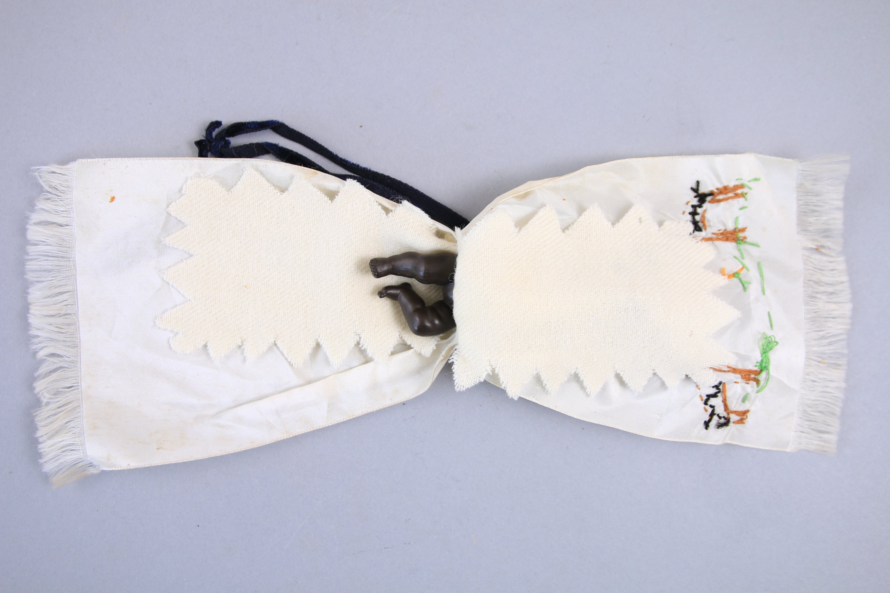 d’un bébé noir en plastique. Dans une robe blanche.