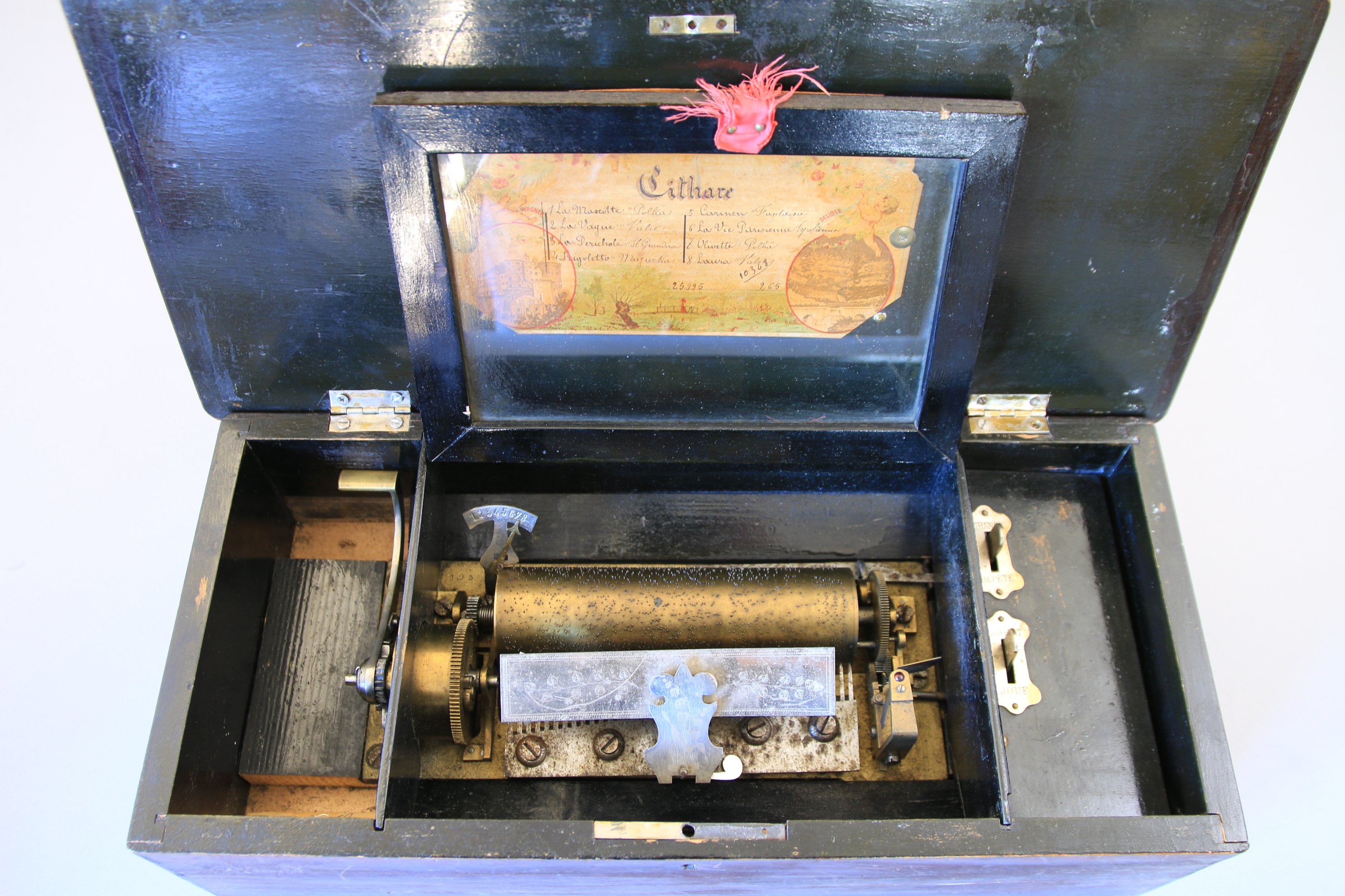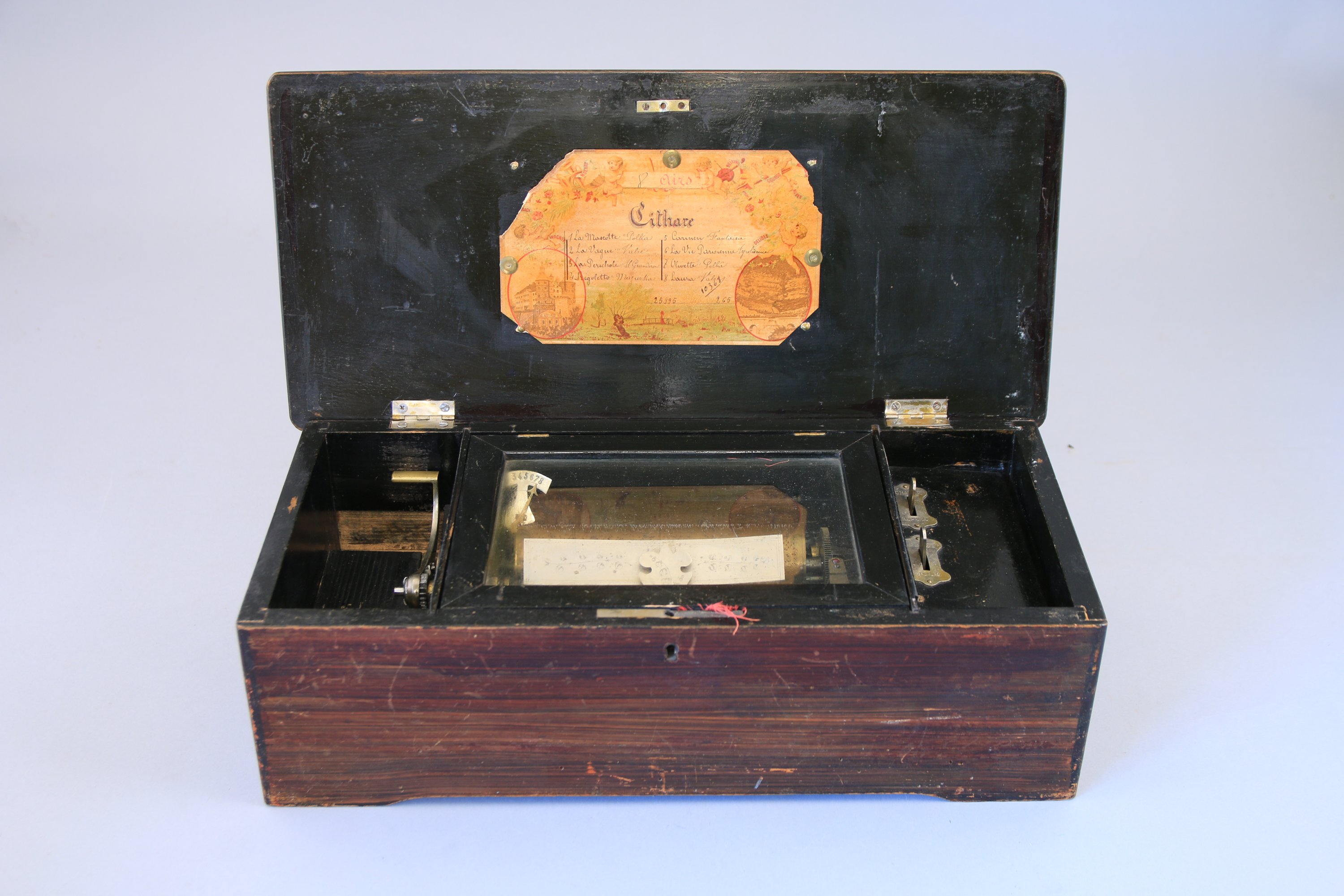 Un cylindre de 15 cm protégé par une vitre, avec remontoir à gauche et deux manettes de commande à droite. Joue les airs de La Mascotte, La Vague, La Périchole, Rigoletto, Carmen, La Vie Parisienne, Olivette et Laura.