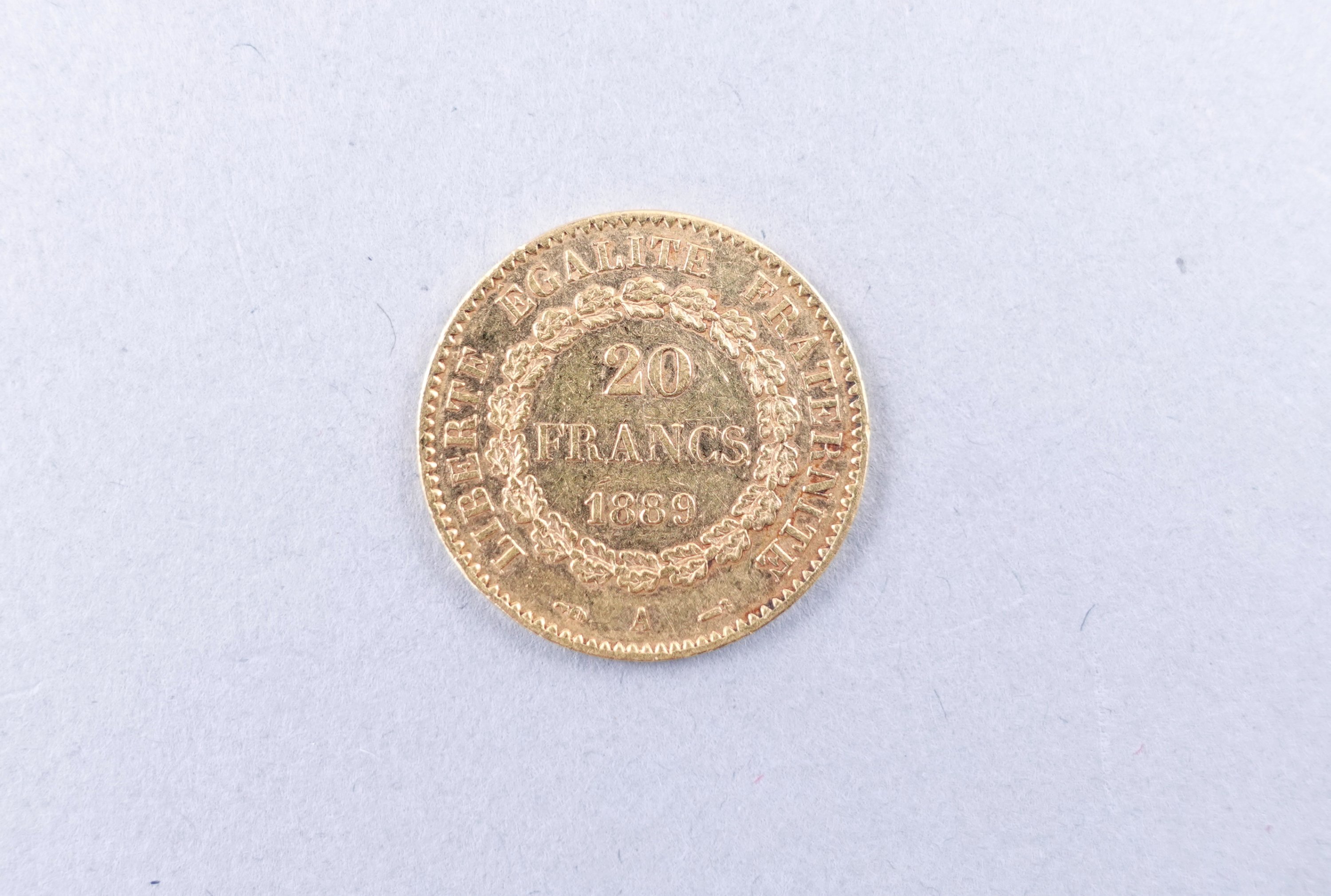 FRANCE. 1 PIÈCE de 20 FRANCS OR, Génie de la République, 1889, Paris.