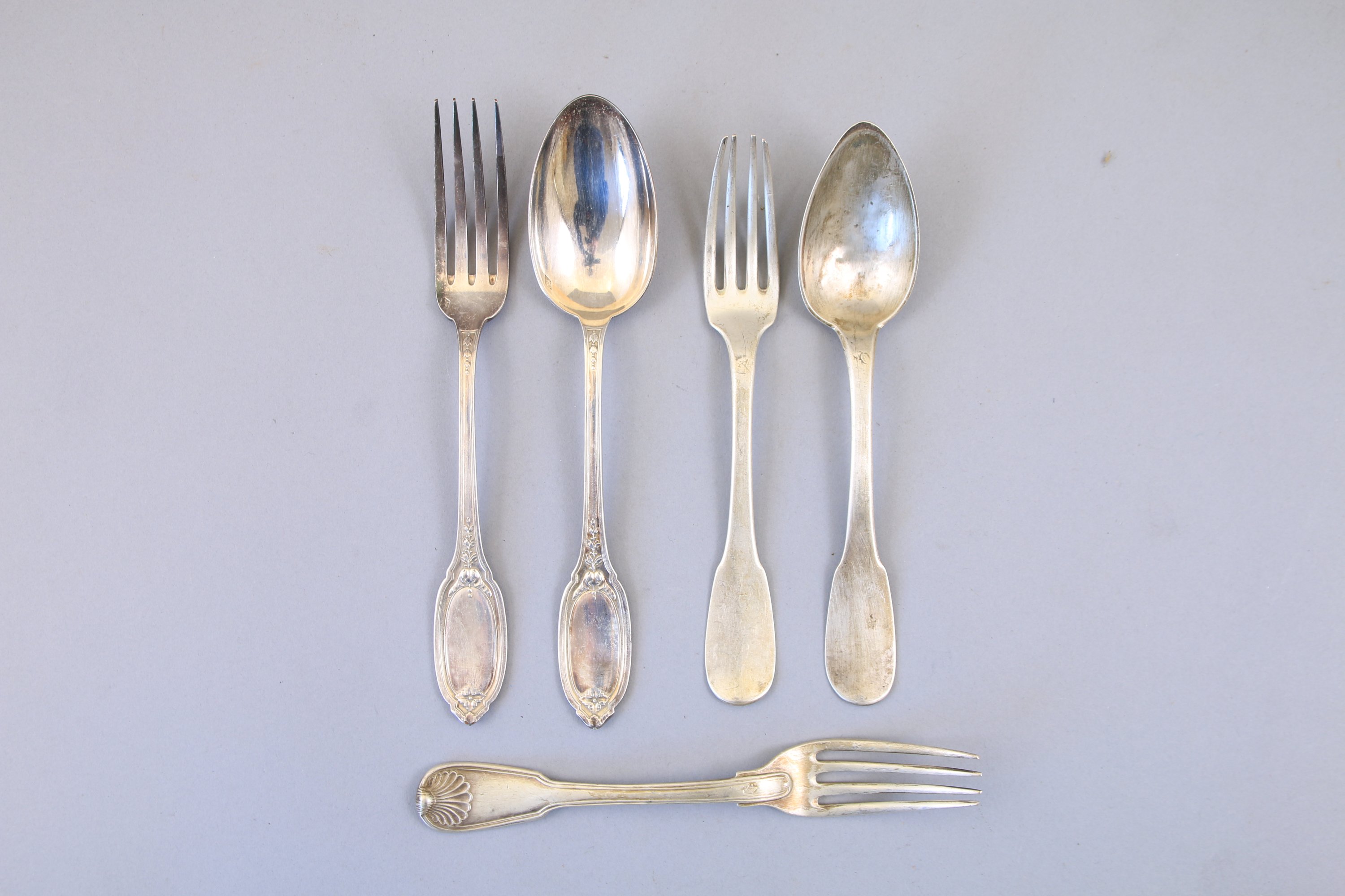 - Un couvert de table en argent, modèle uniplat. Poinçon Vieillard (1819-1838). Poids 118 g. (enfoncements).