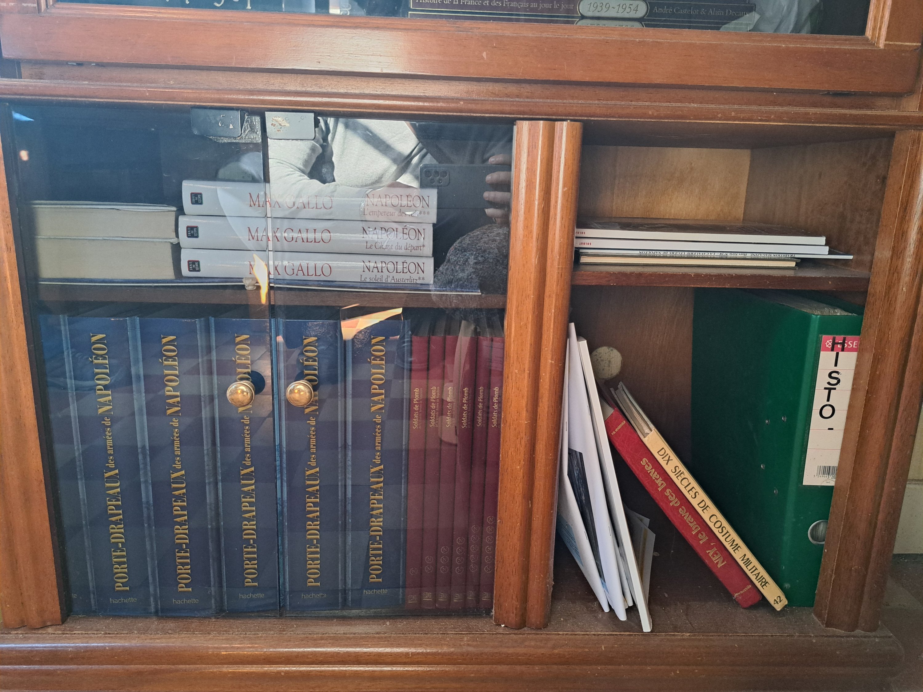 - Quatre bibliothèques de livres divers dont historique (Empire), armes, art, etc.