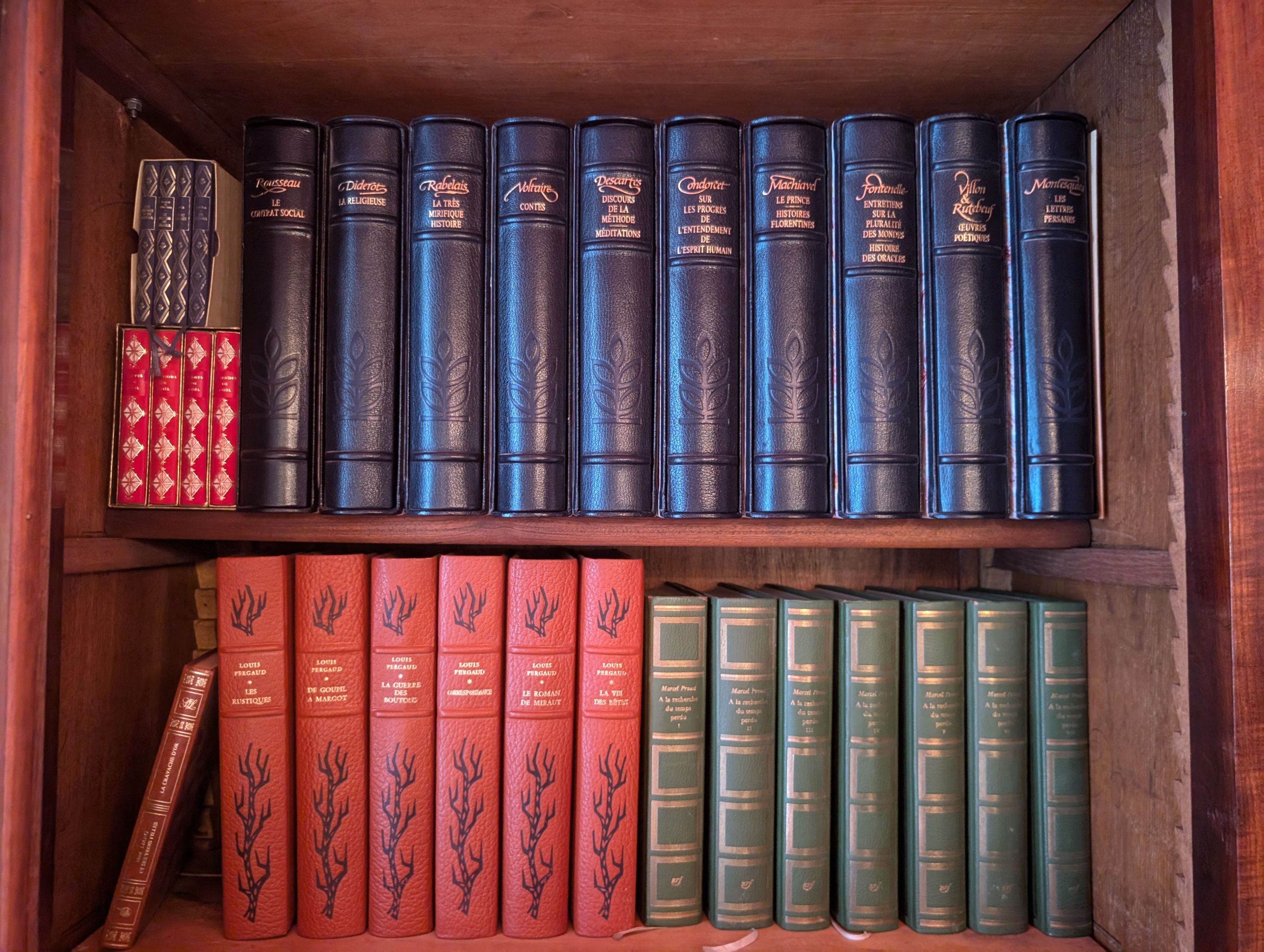 comprenant un ensemble de livres modernes dont Voltaire, Marcel Proust, "Beauté de la France", Honoré de Balzac, Henri Troyat.