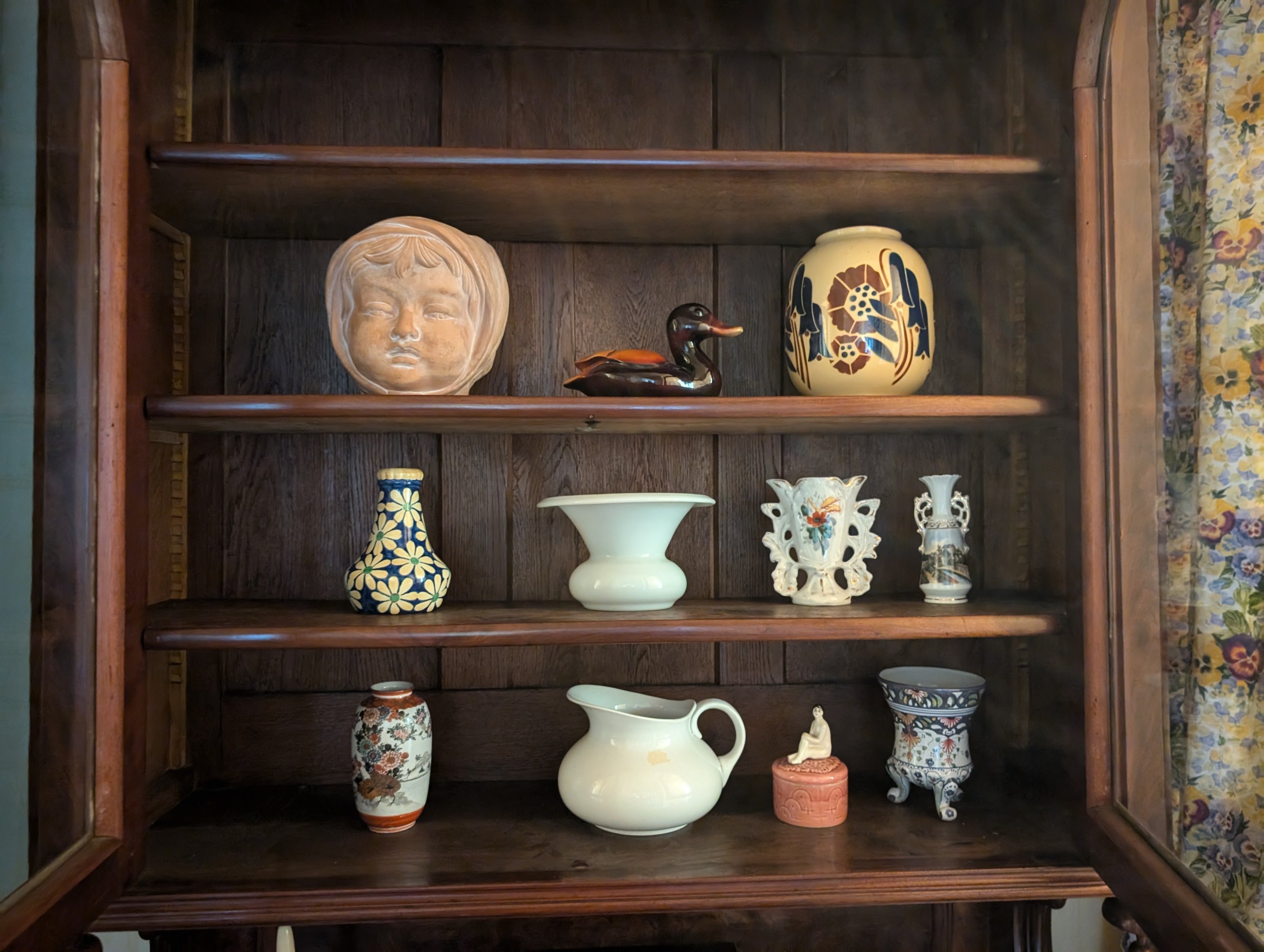 dont un canard et divers vases.