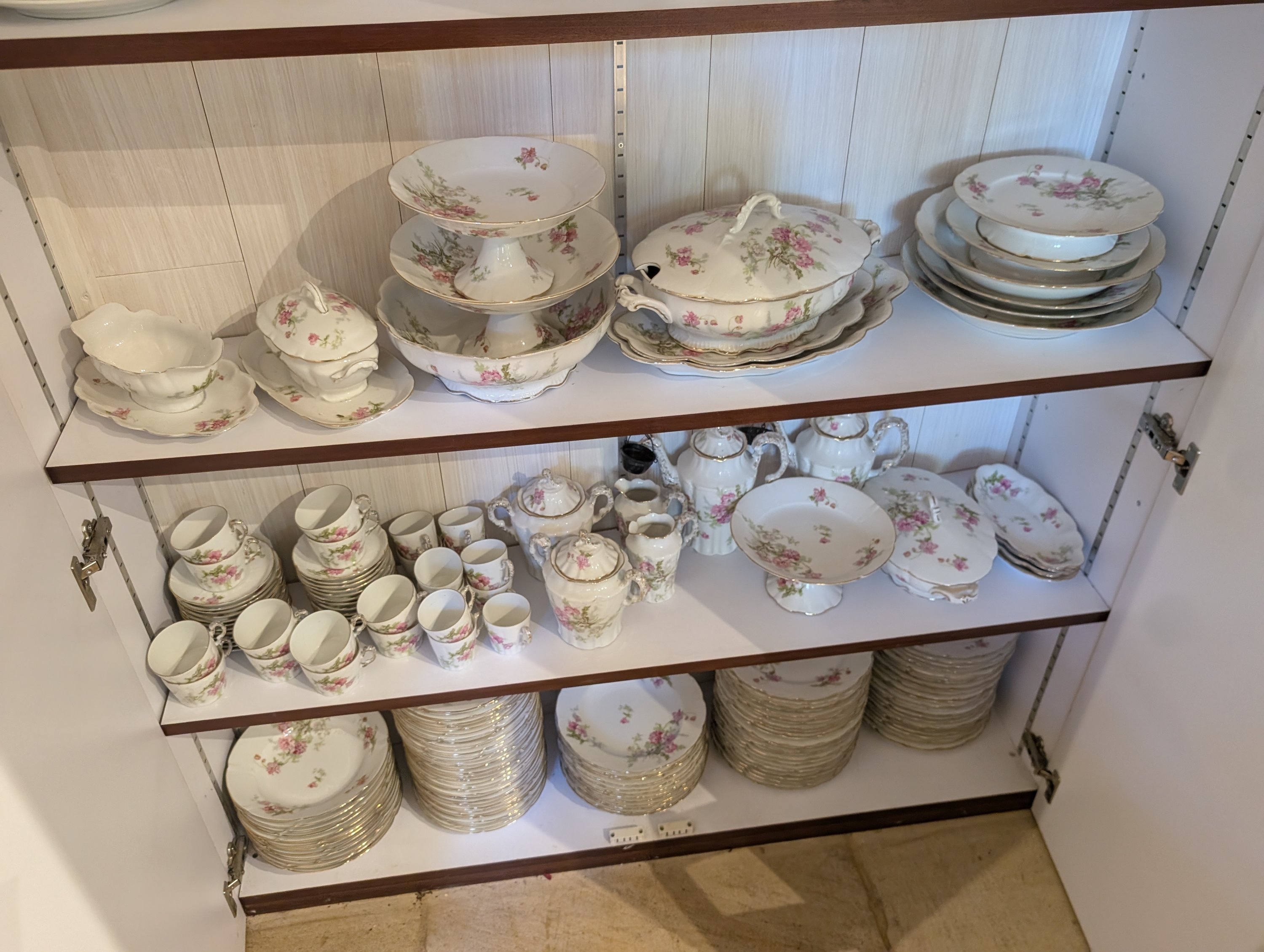 en porcelaine comprenant assiettes plates, assiettes creuses, raviers, assiettes montées, saucières, plats, service à thé-café.