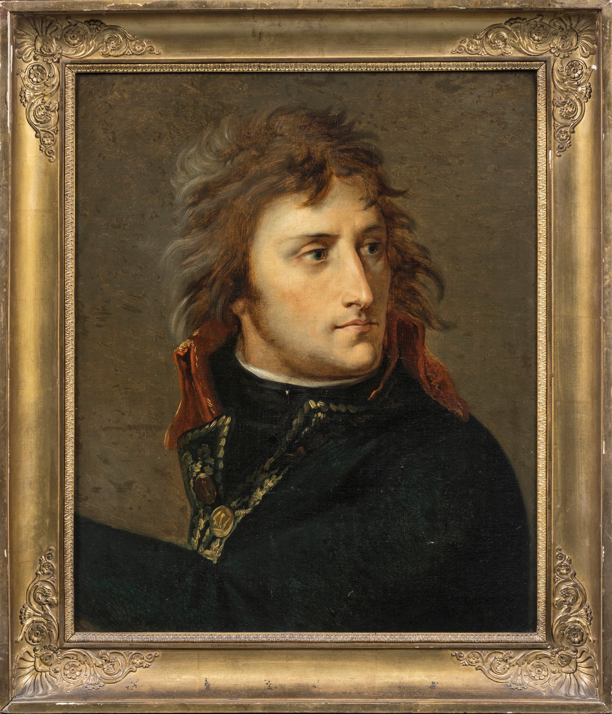 A painting featuring Napoleon Bonaparte by the Arcole Bridge. Oil on canvas in its original frame.