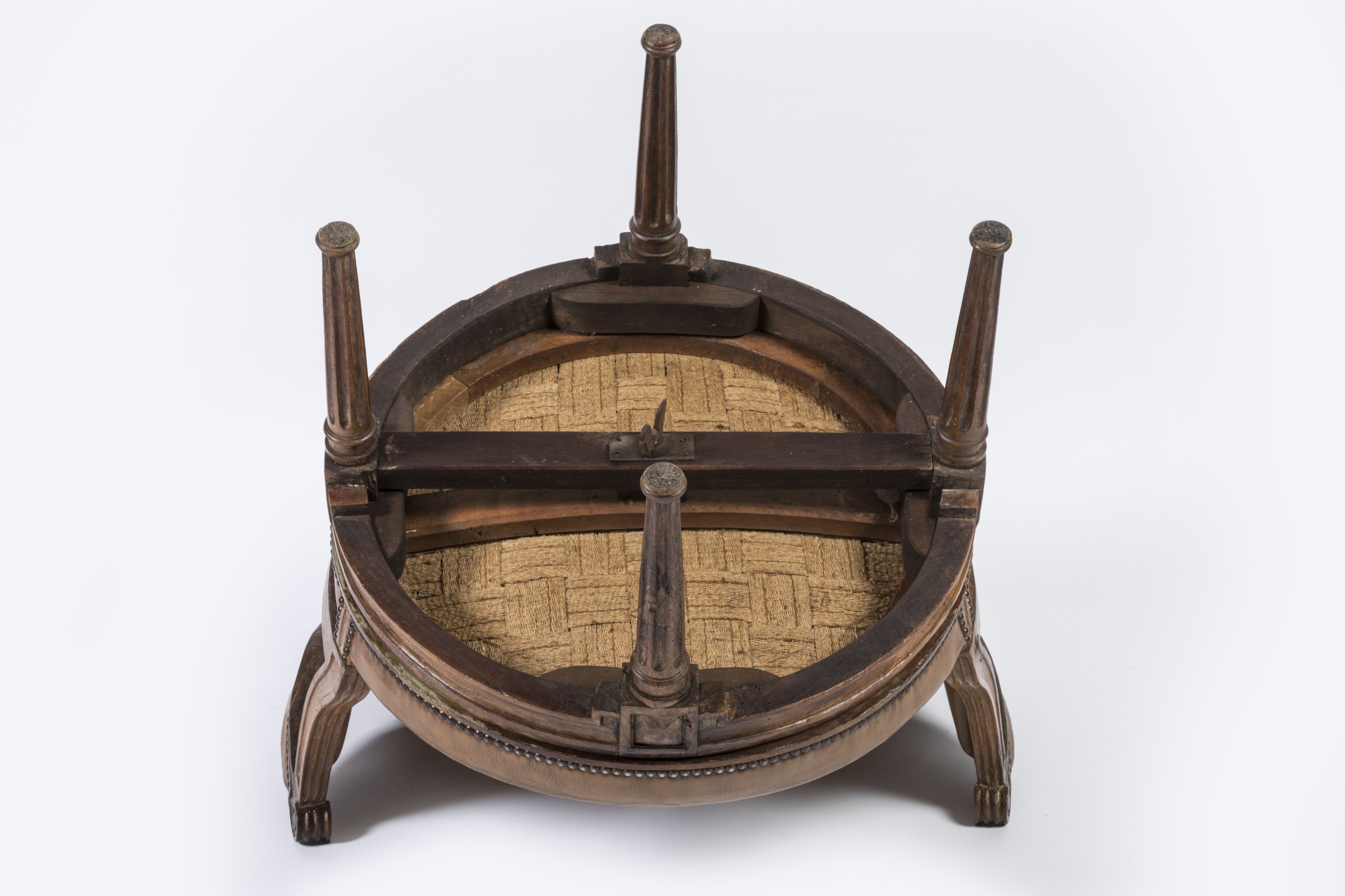 Garniture de cuir havane tapissée de clous en laiton.