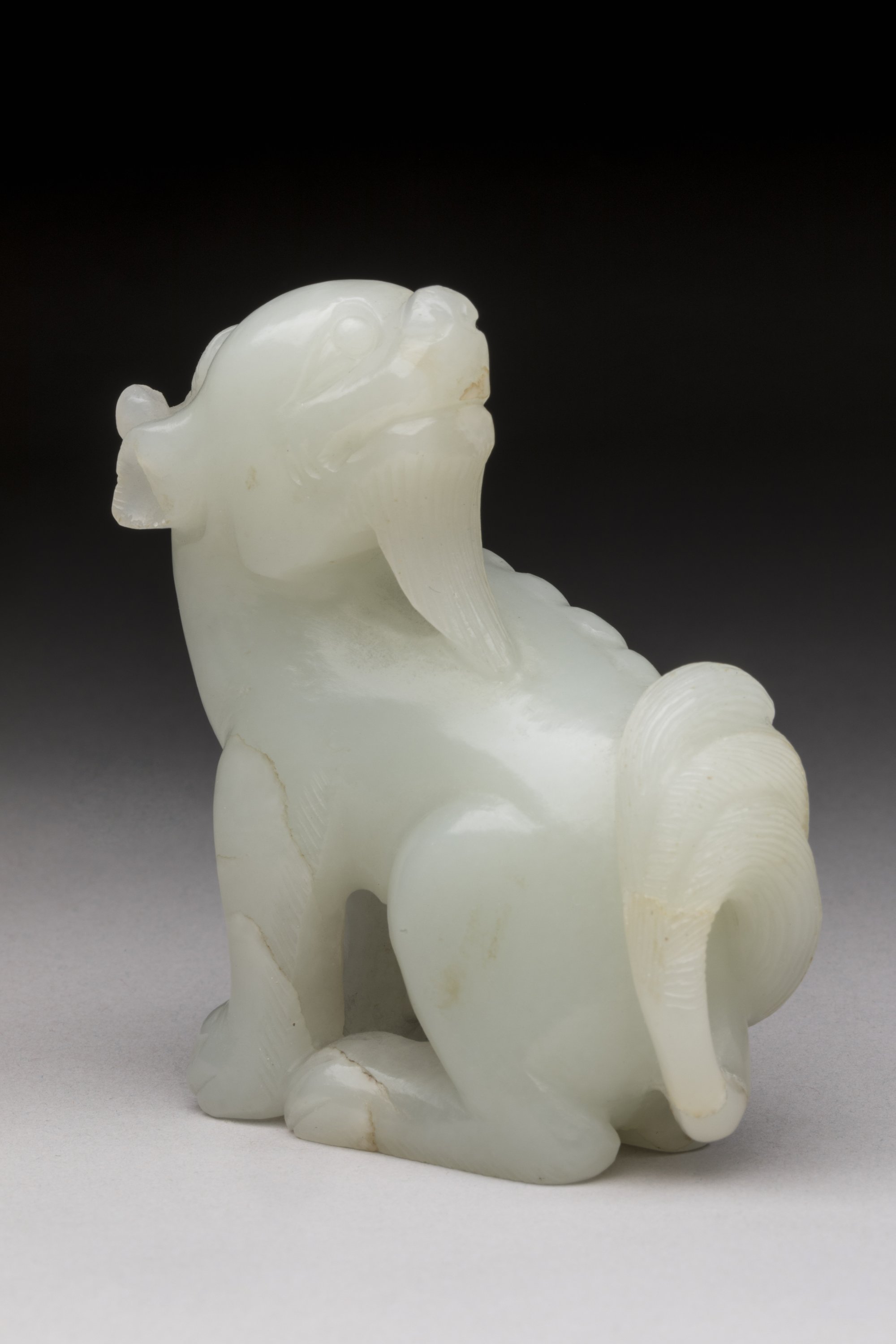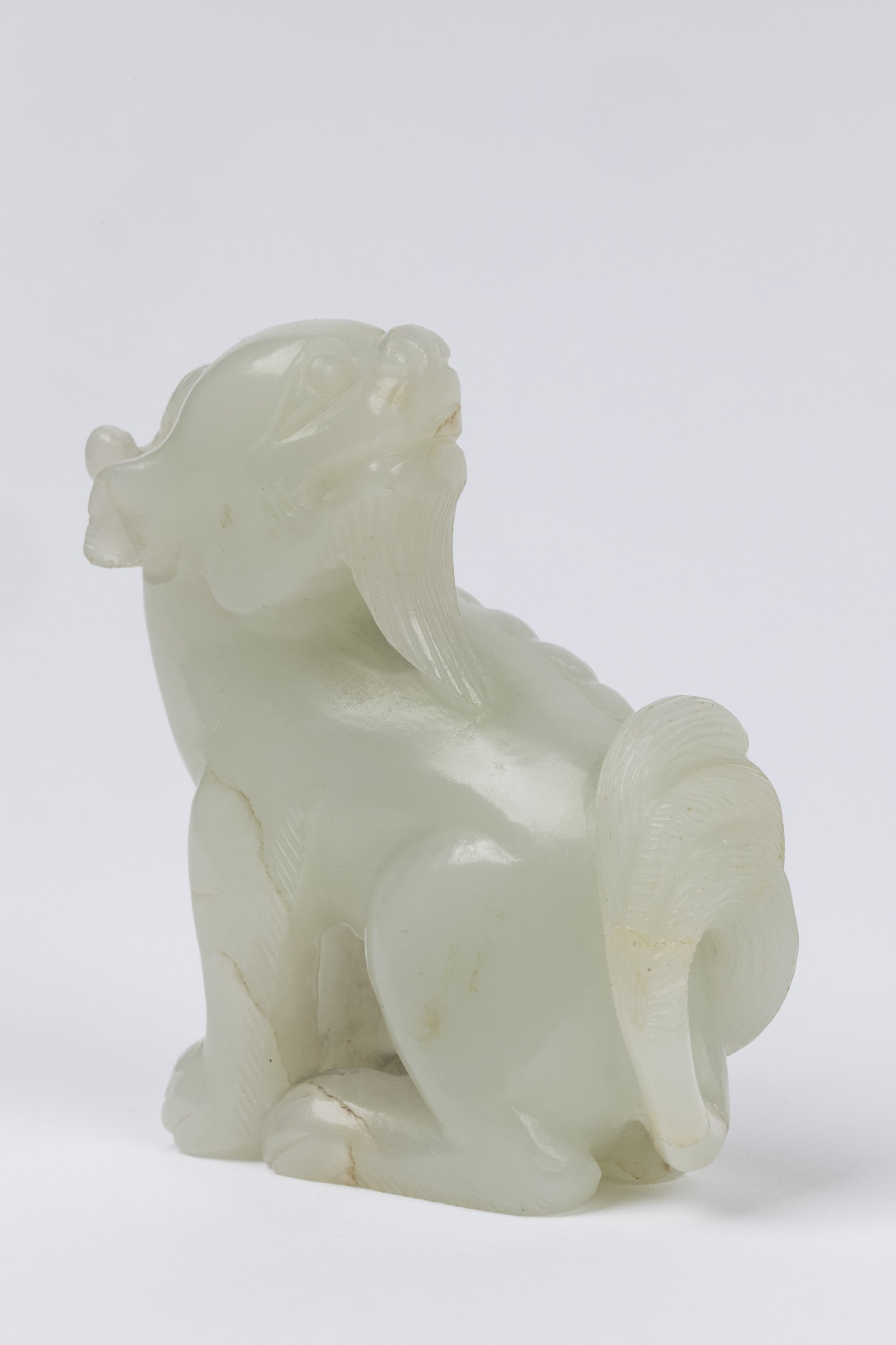 A Chinese celadon jade pixiu carving. Early 20th century.