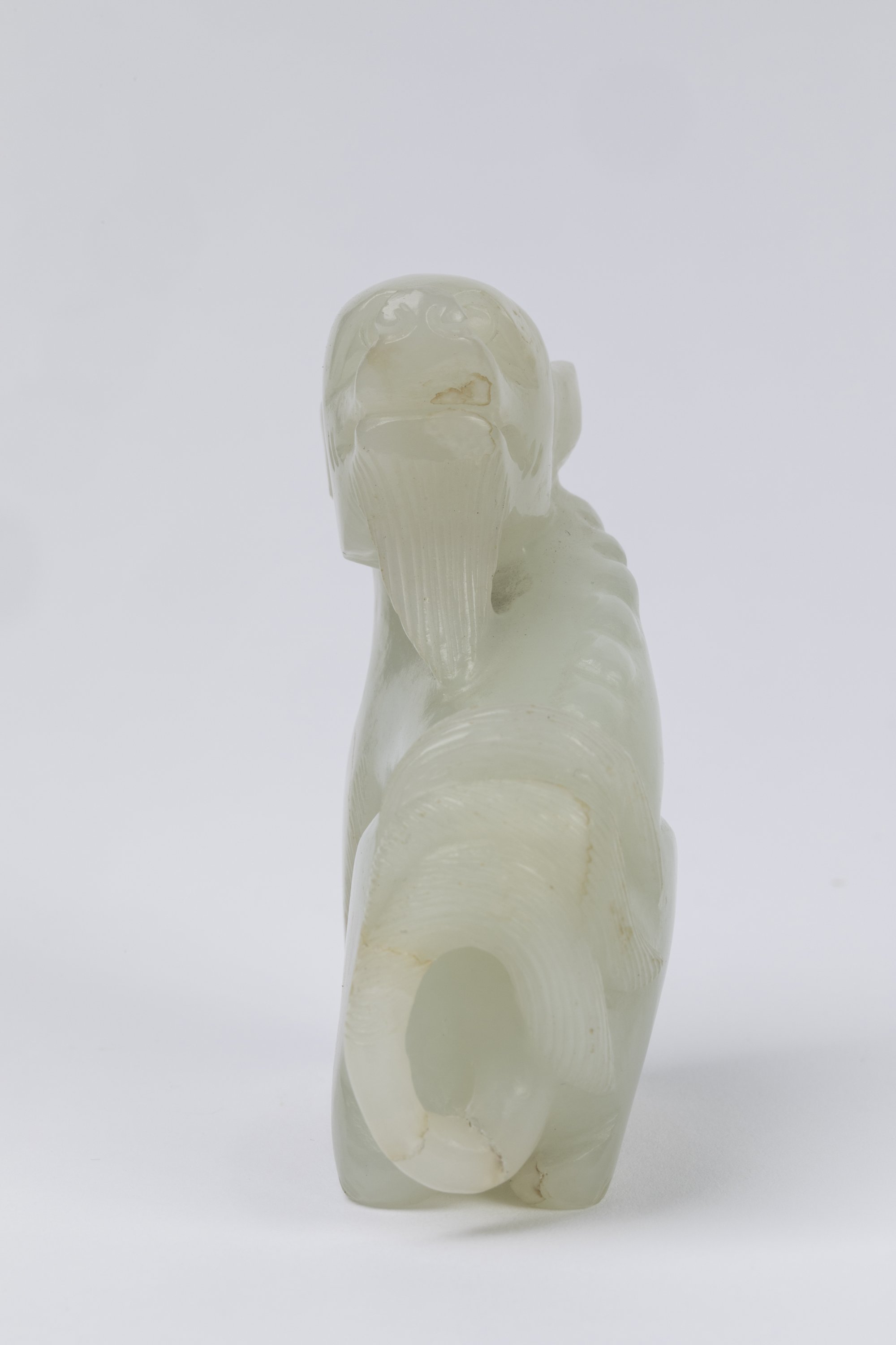 Jade (néphrite) céladon, la tête tournée vers l'arrière.