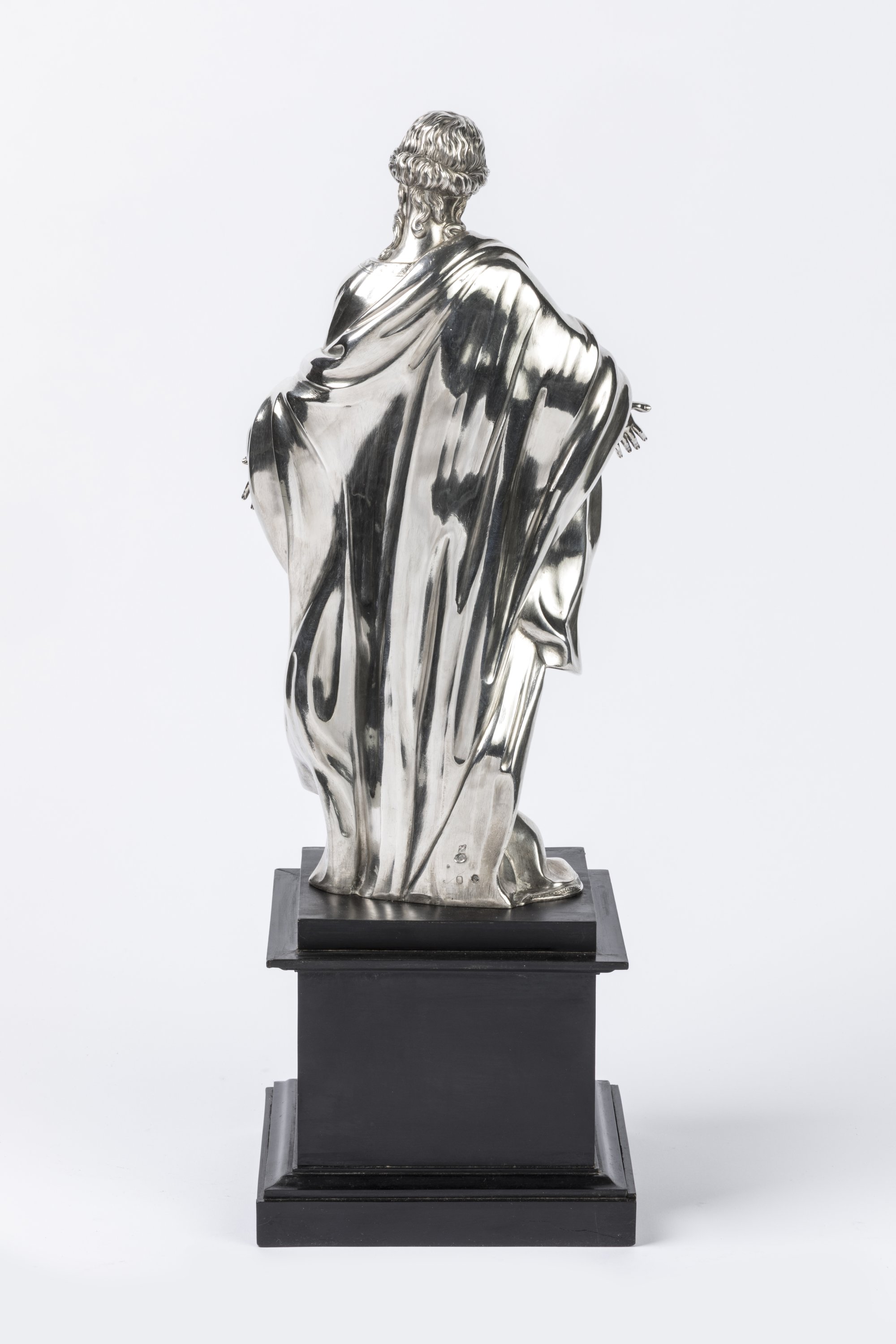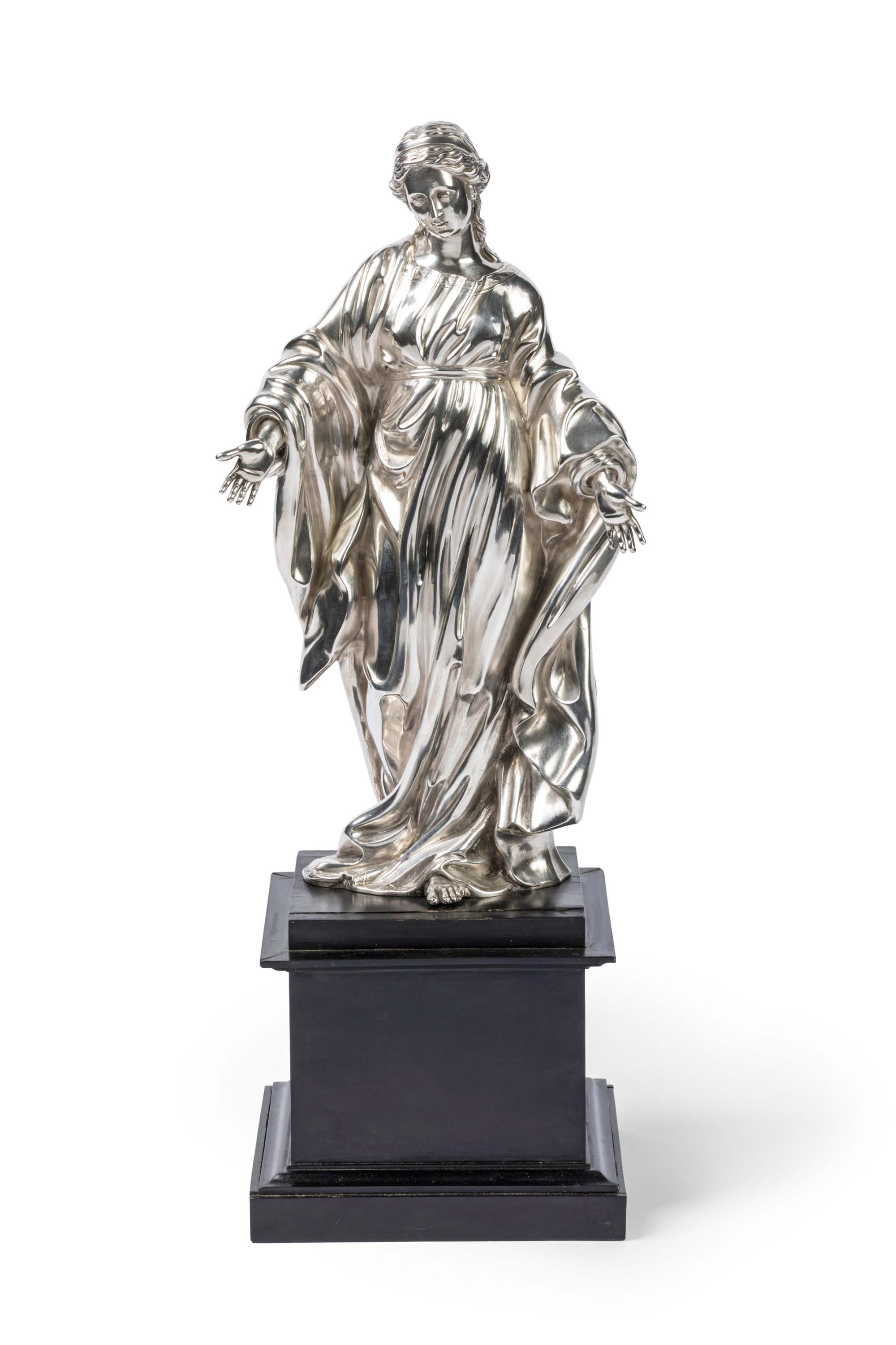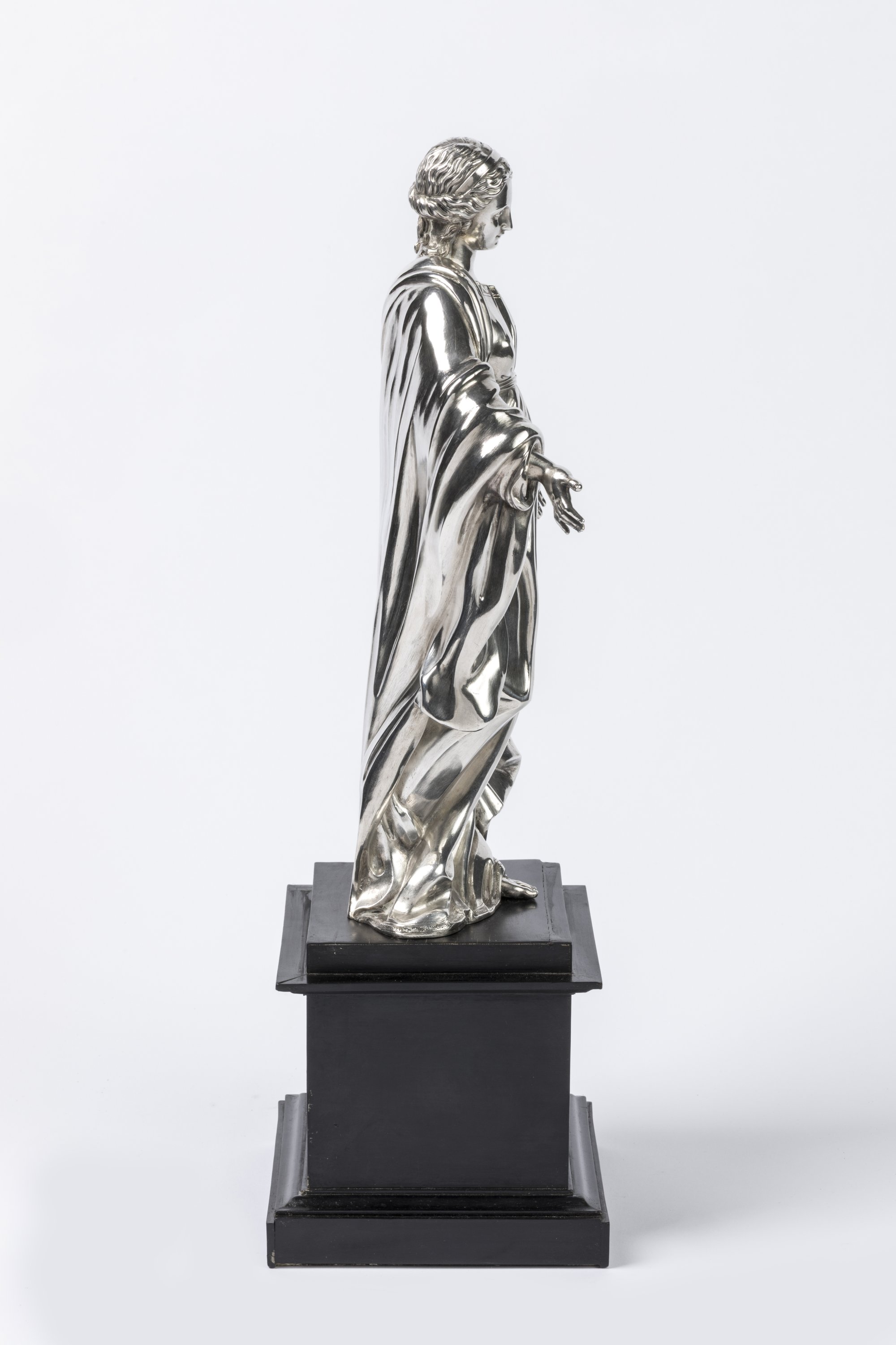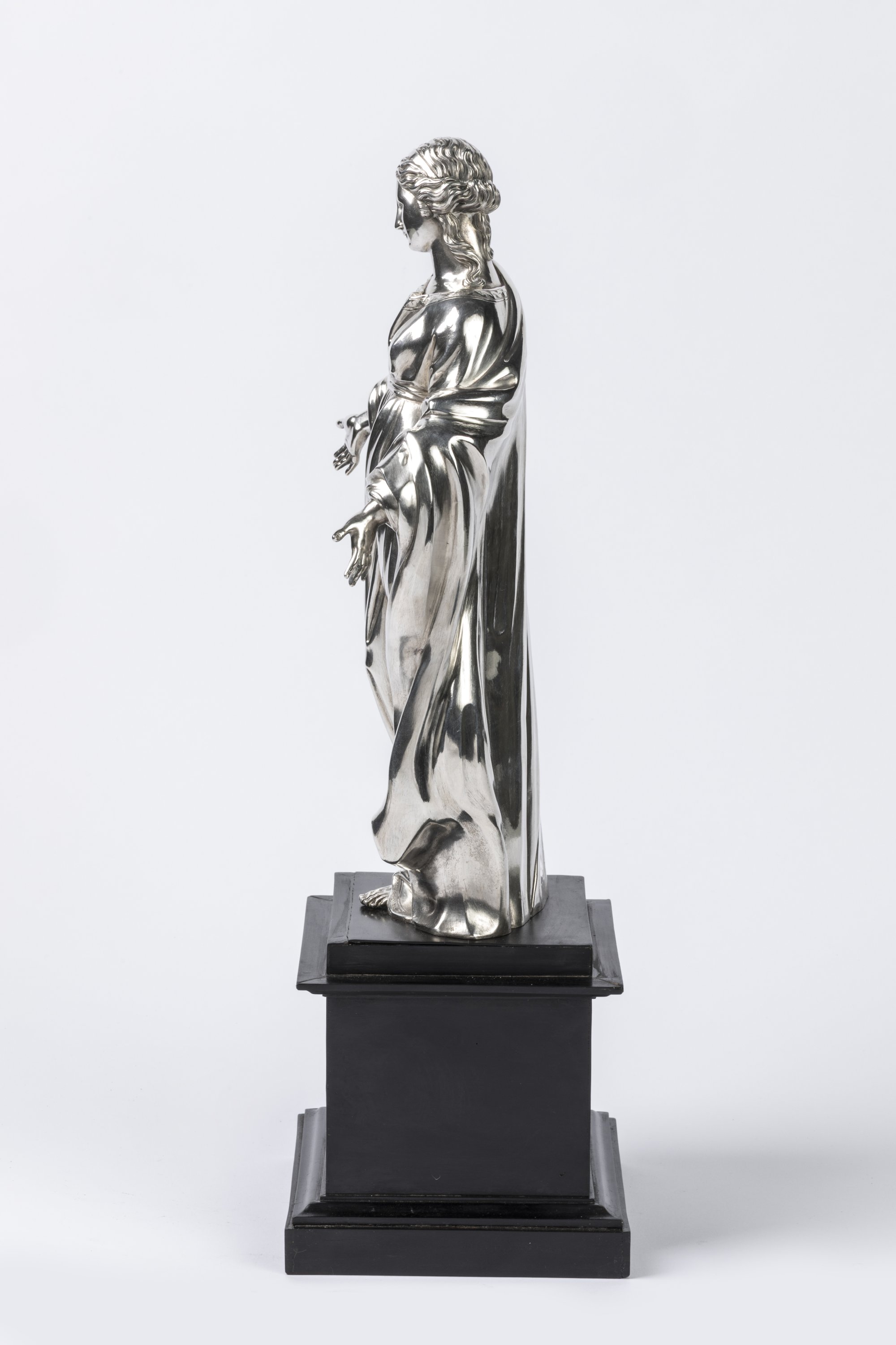 François-Joseph Bertrand-Paraud. A silver sculpture of the Virgin Mary. On a blackened pearwood base.