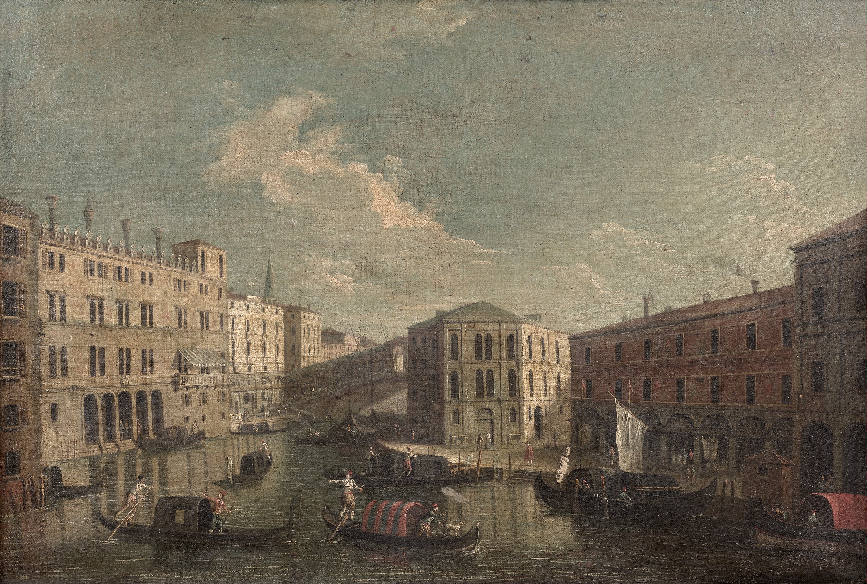 Apollonio Domenichini, aka the Maestro della Fondazione Langmatt. A view of Venice from the Rialto Bridge. Oil on canvas.