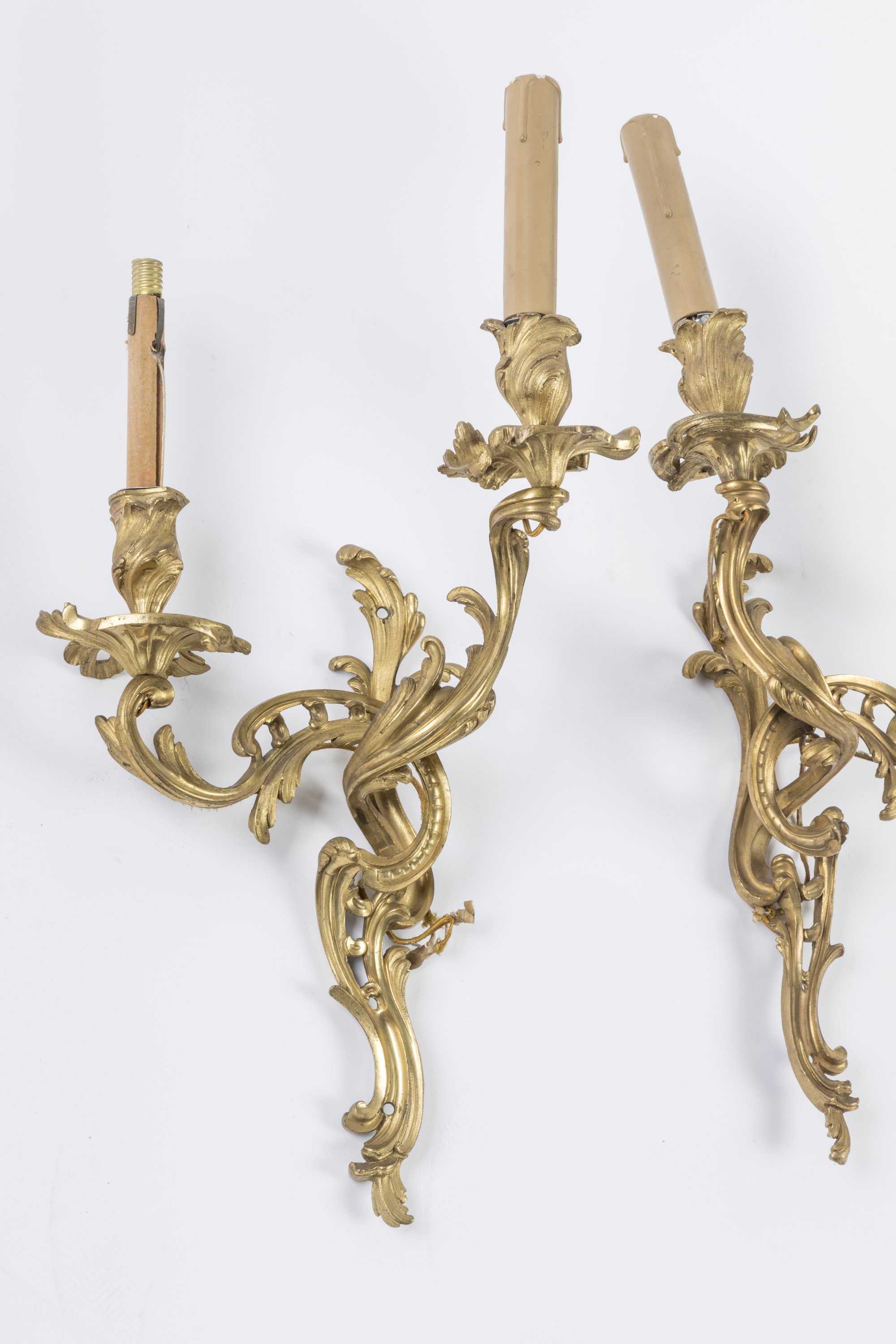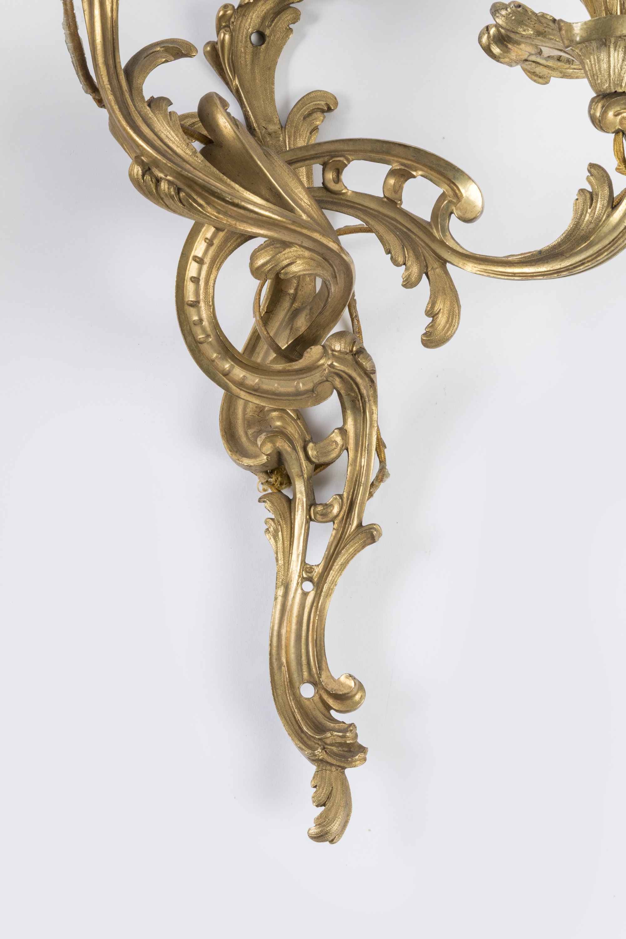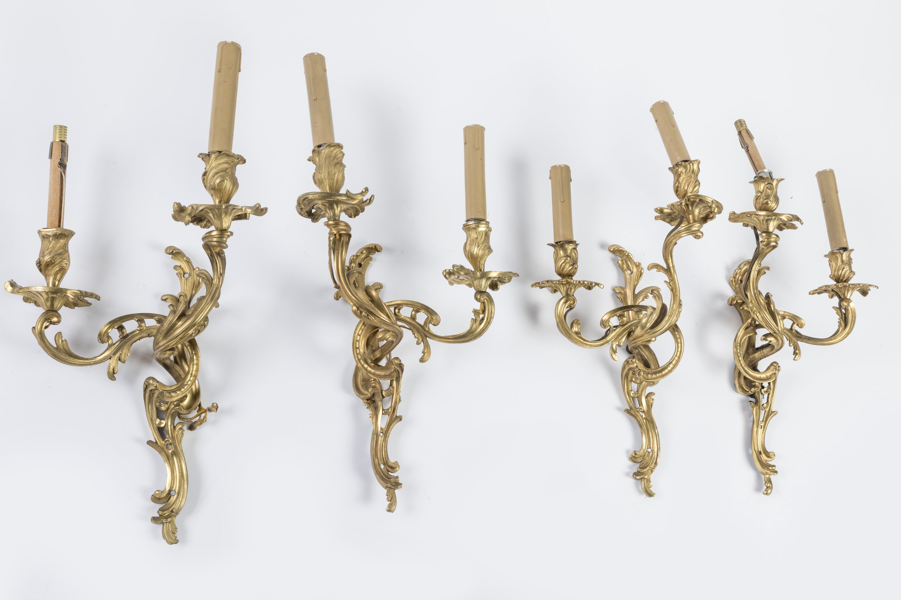 Two pairs of asymmetrical chiseled ormolu wall sconces. Louis XV style.