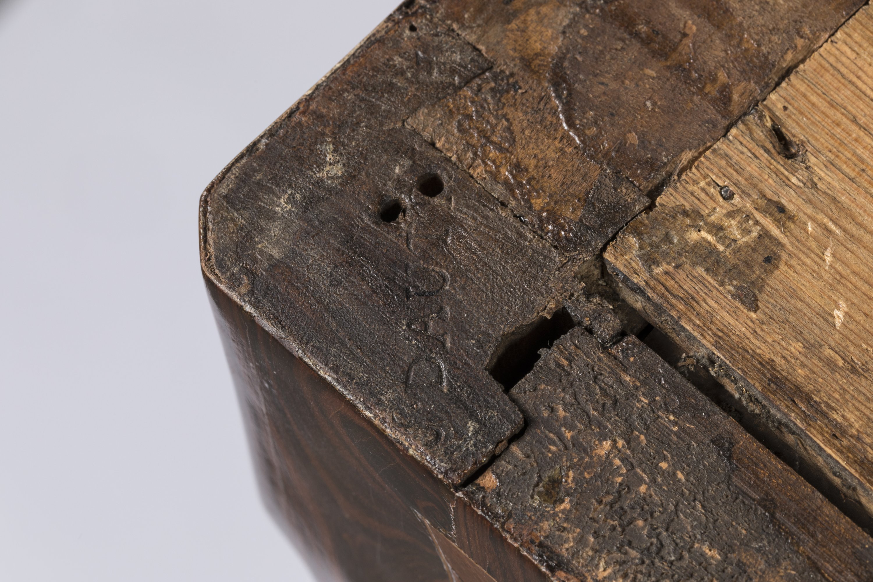 Garnitures de bronze doré aux entrées de serrures et sabots.