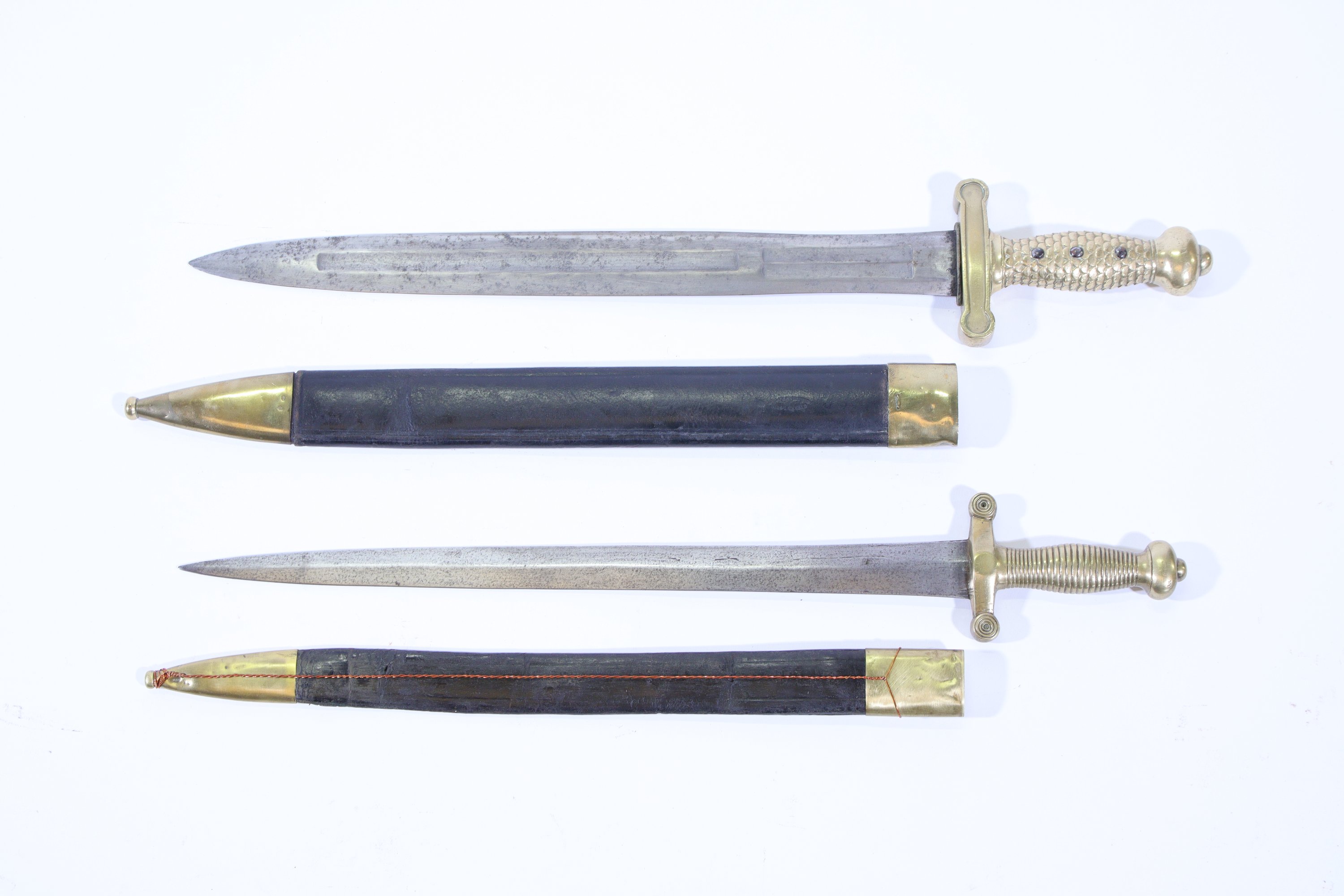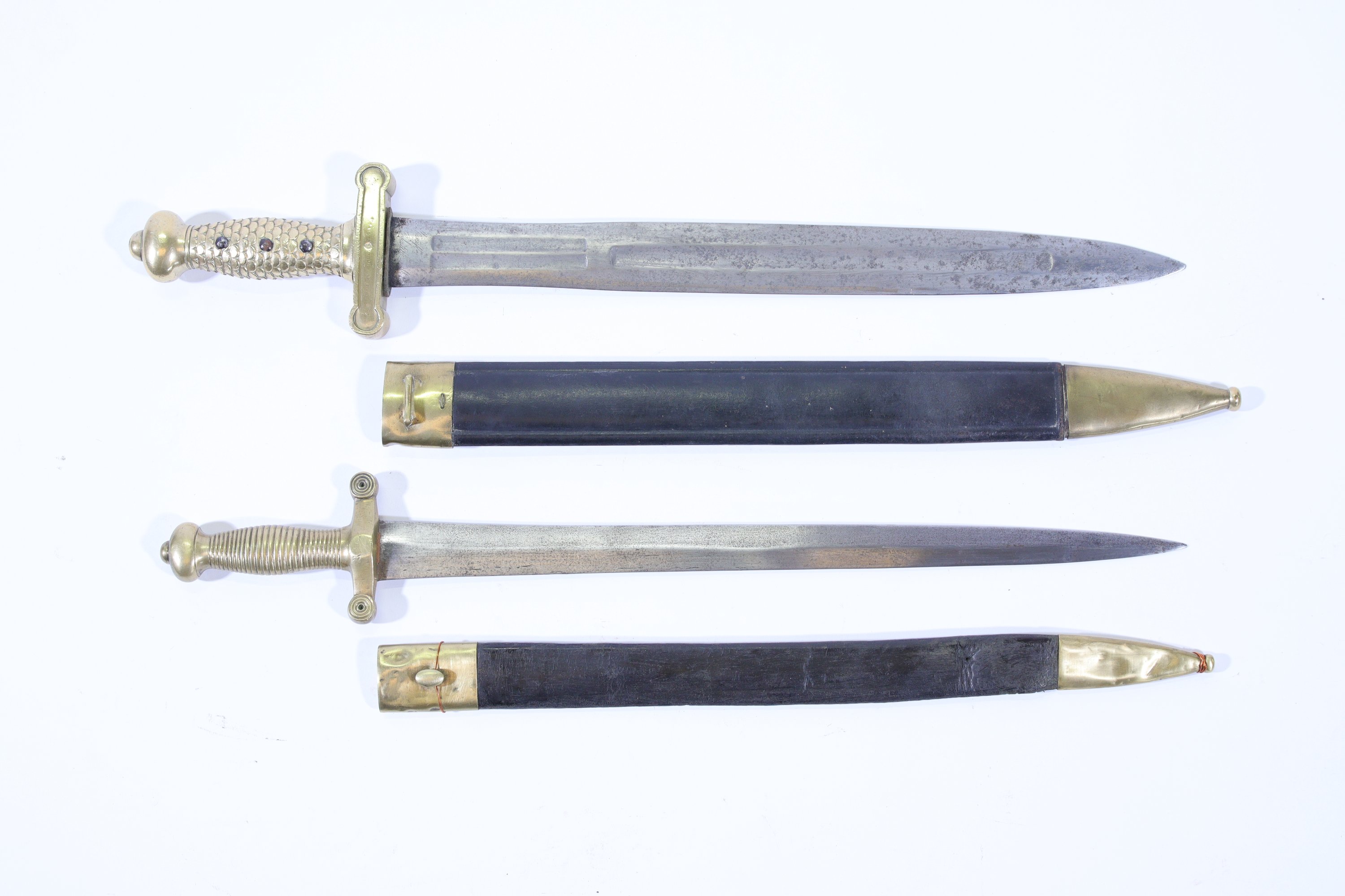 Glaive d’artillerie de marine modèle 1816, monture poinçonnée de l’ancre, lame de la manufacture royale de Châtellerault datée de septembre 1840, fourreau à deux garnitures en laiton.