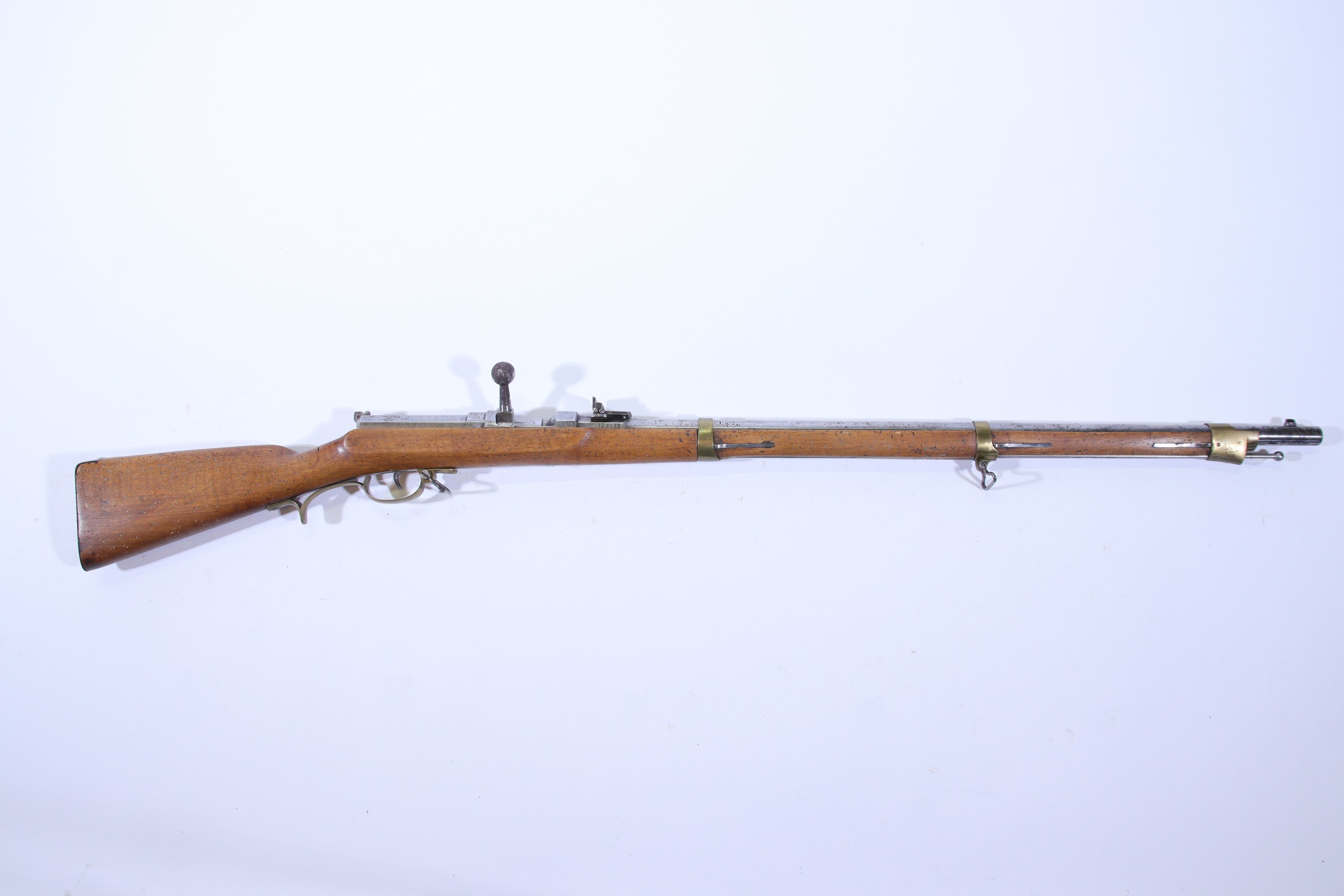 Canon rond, à pans au tonnerre, poinçonné « Stahl » et « 59 », avec hausse. Boîtier de culasse « BG Mod 62 », daté 1866 et 1867. Garnitures en laiton poinçonné. Plaque de couche en laiton matriculé « 6 R 10 147 »