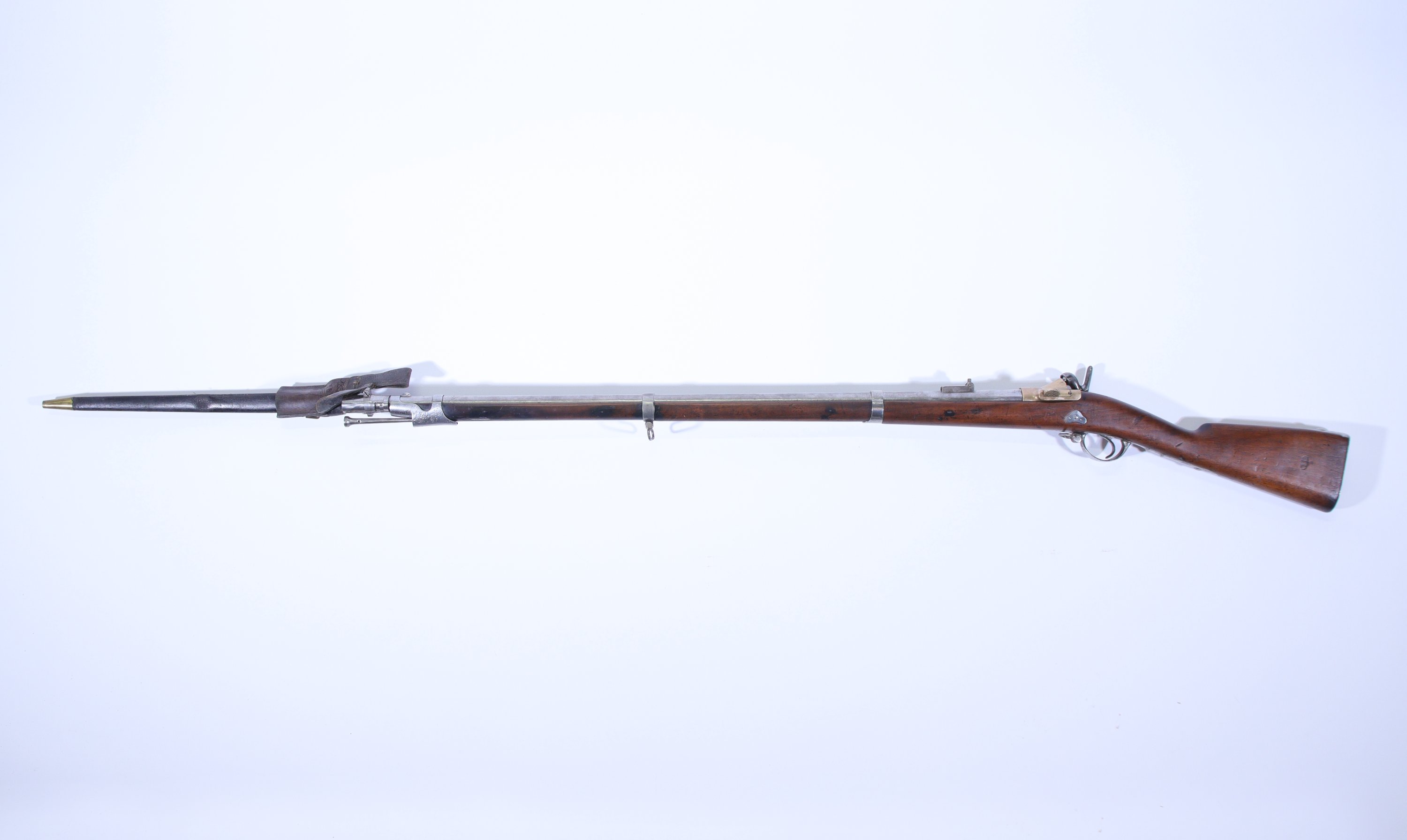 Avec baïonnette à douille (Long. 52,5 cm) et gousset en cuir poinçonné du 84e de ligne.