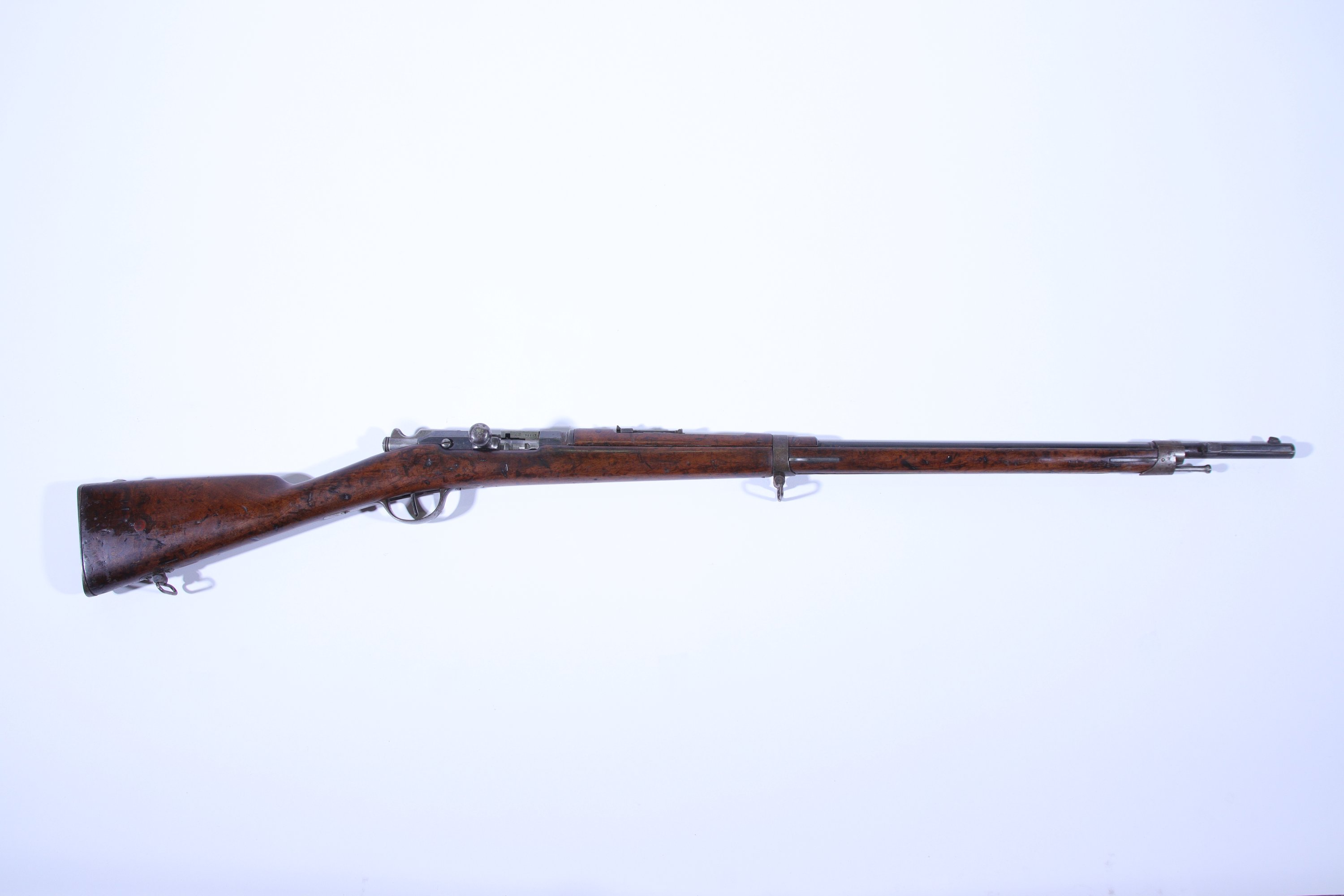 Canon rond avec hausse, boîte de culasse marquée « Manufacture d’armes Tulle Mle 1874 M80 M14 ».