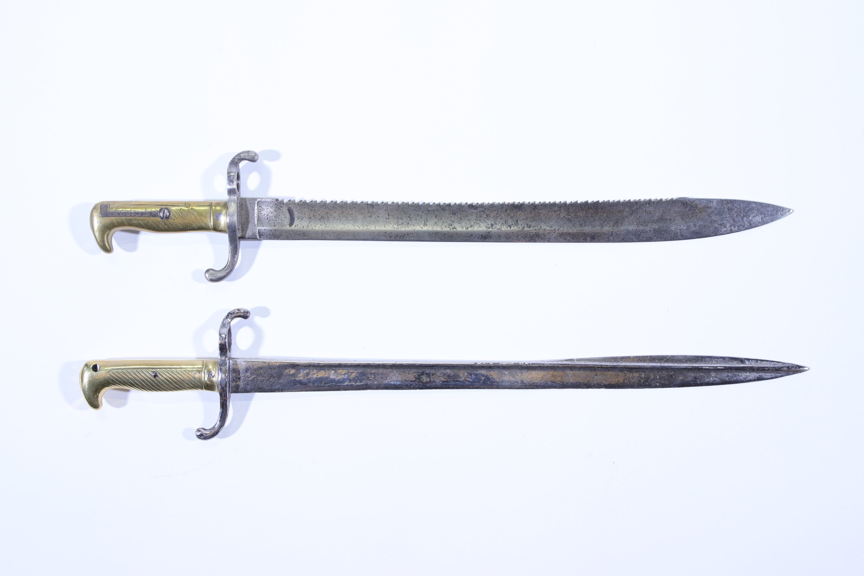 - Une baïonnette modèle 1871. Forte lame à dos scie. S.F.