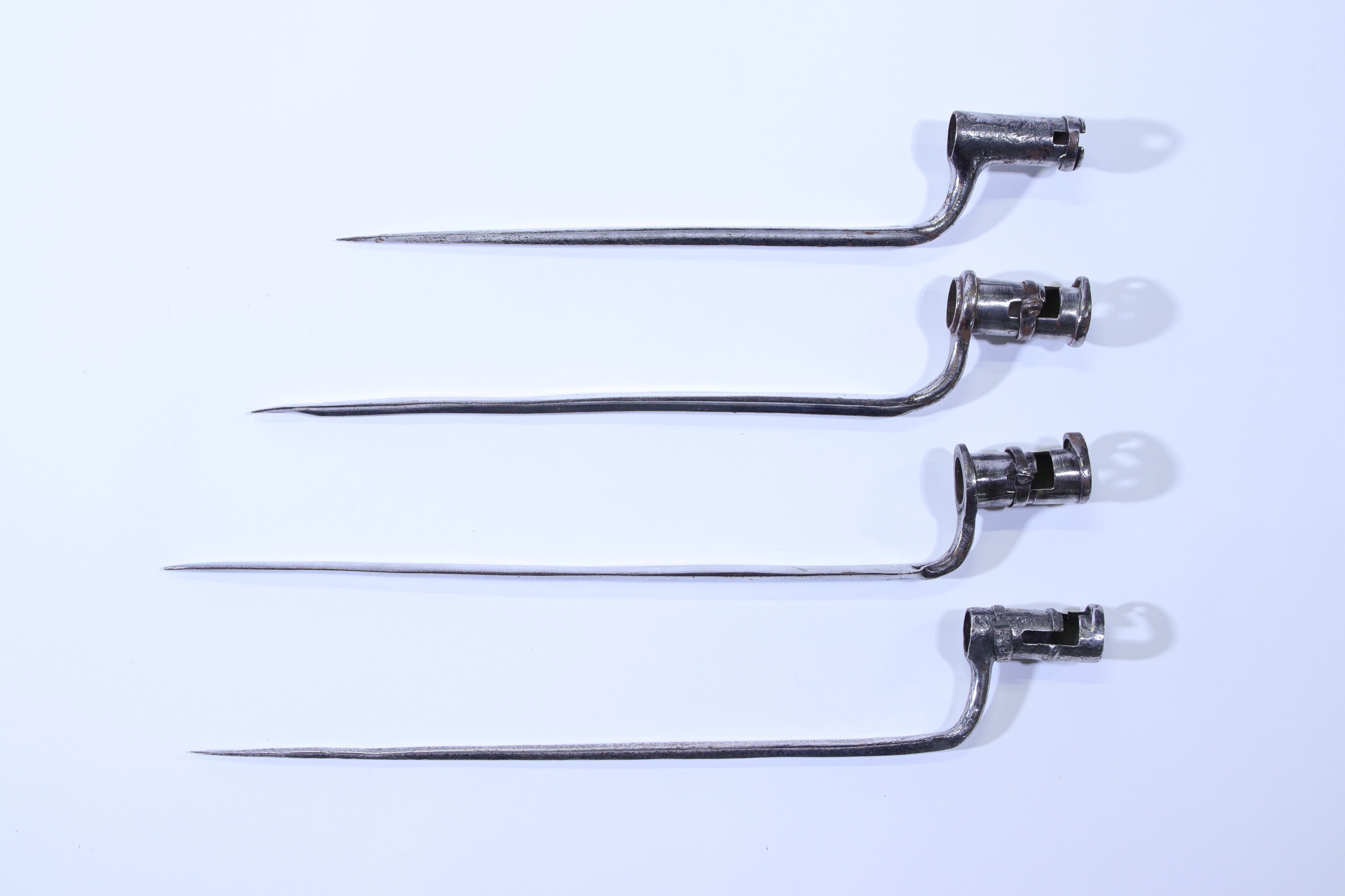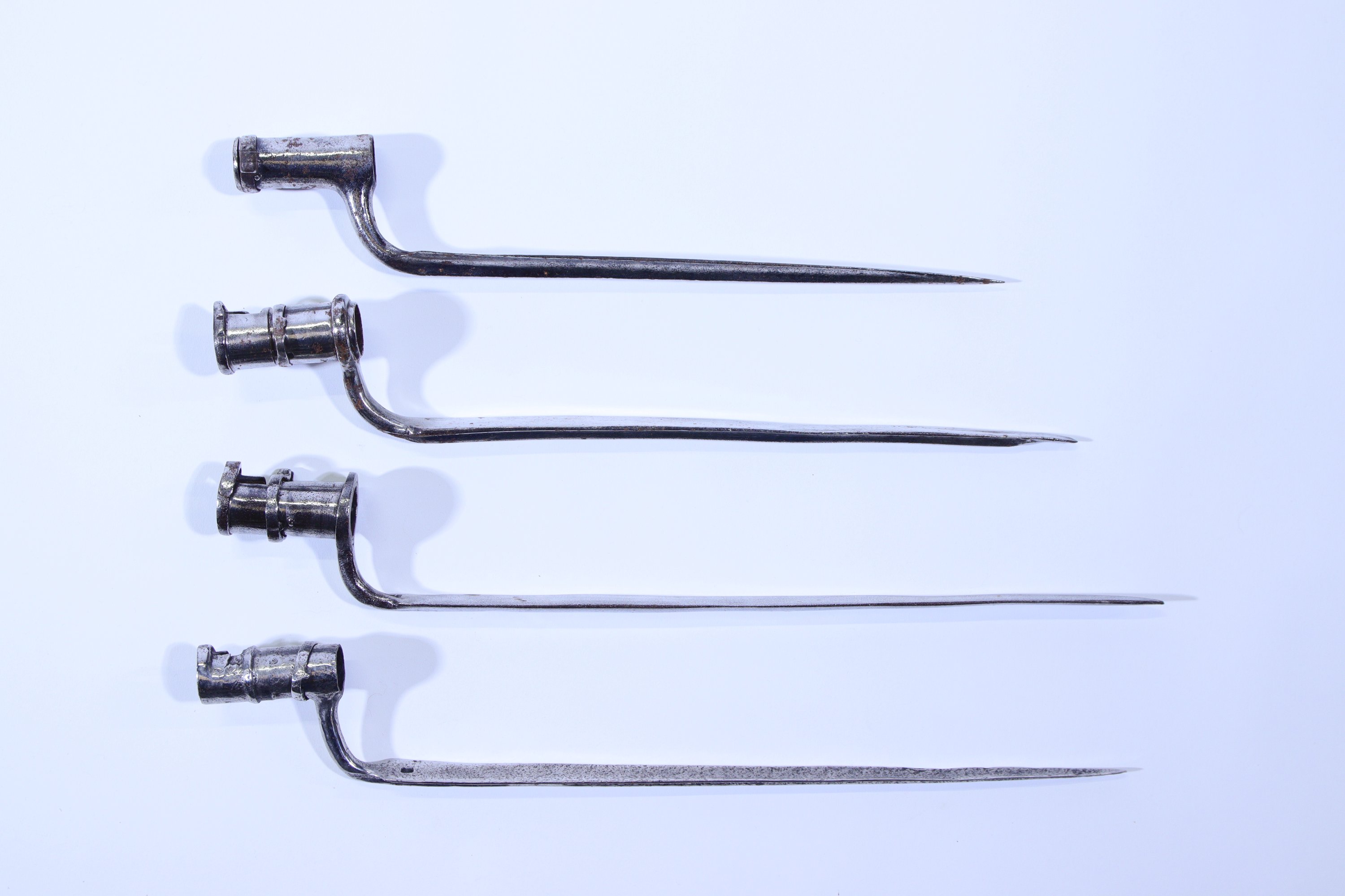 Ensemble de quatre baïonnettes à douille d’époque XVIIIe s.