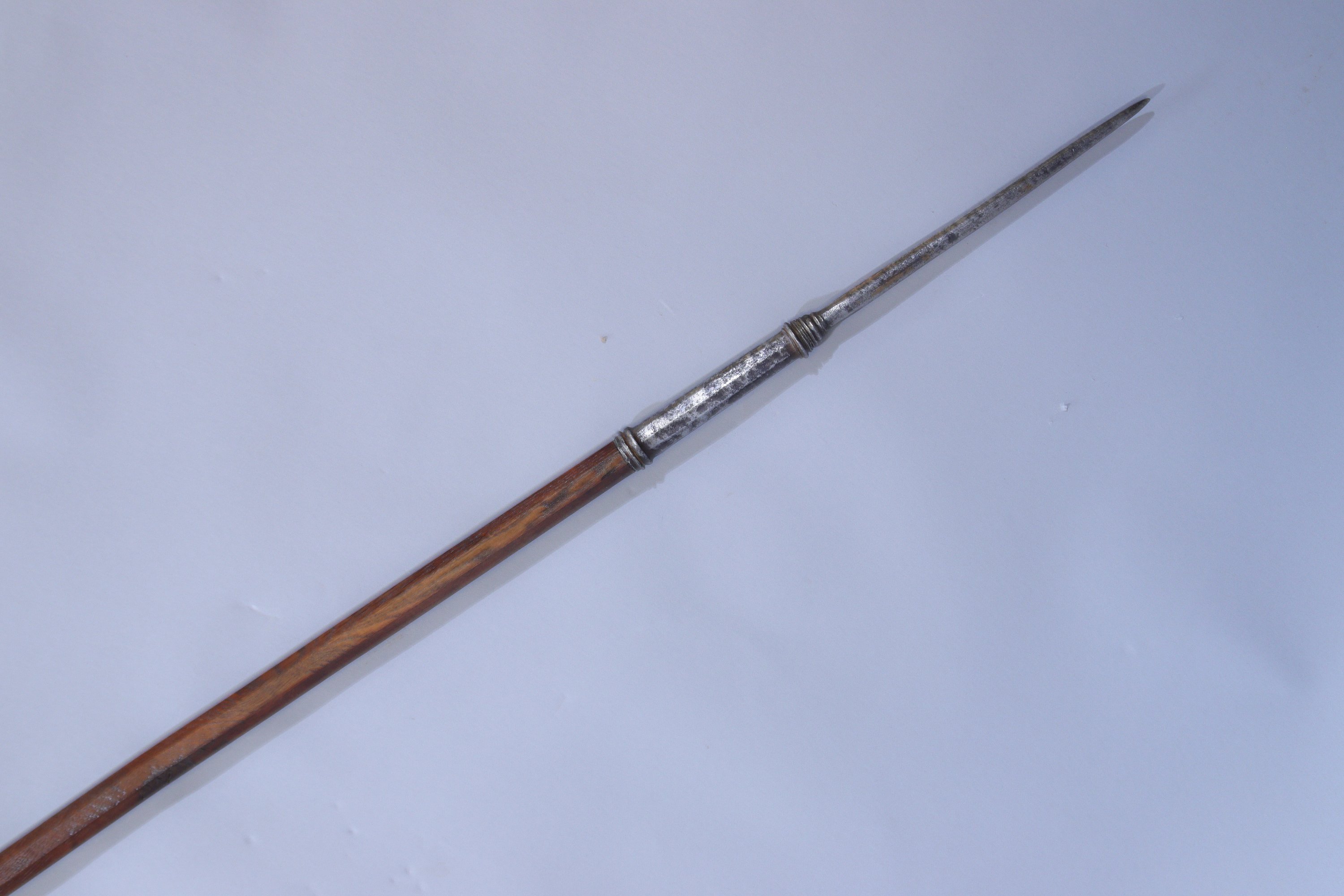 Fer à pans, monté sur douille à pans. Sur hampe postérieure.