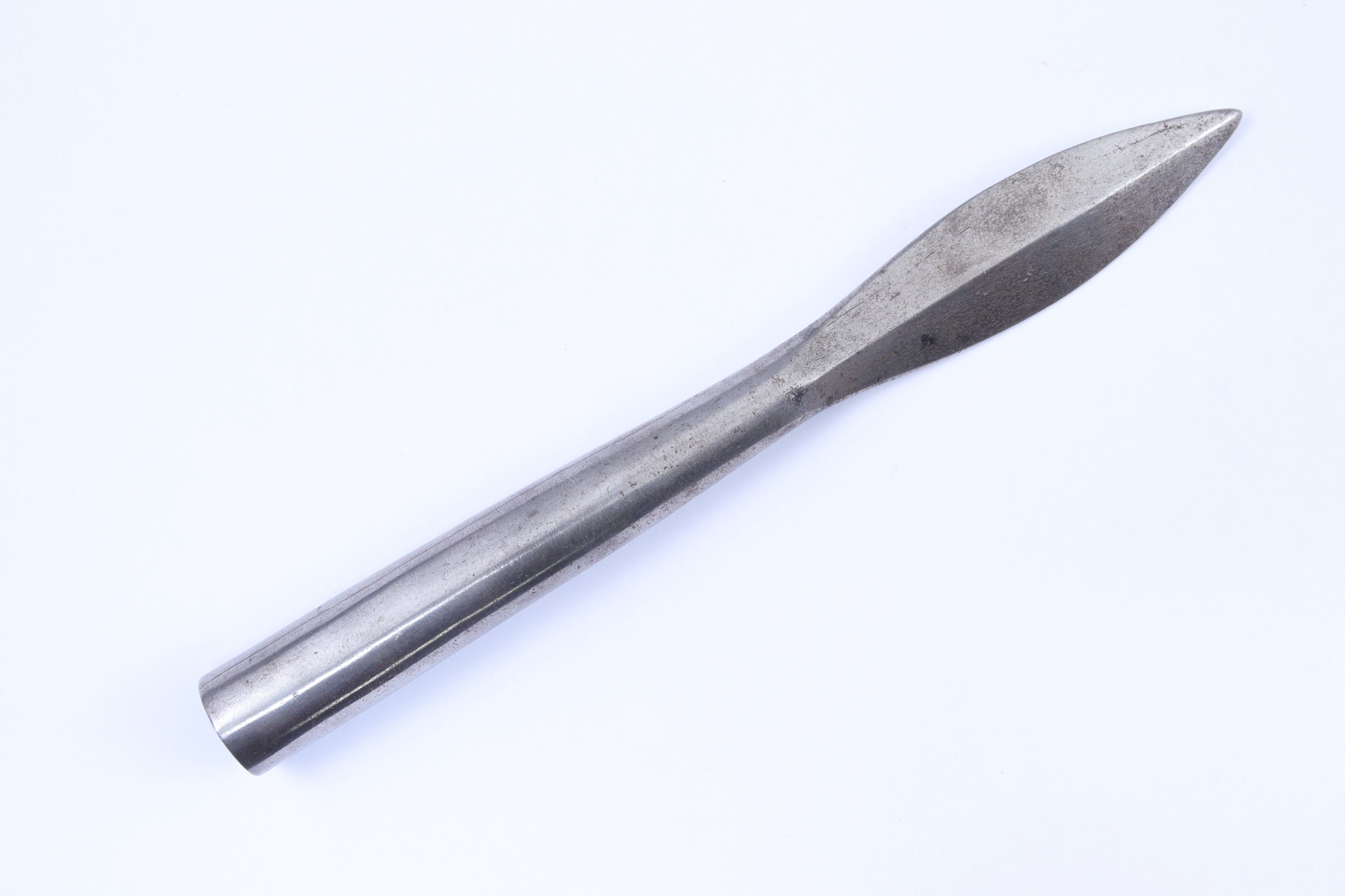 en fer forgé à arête médiane, sur douille ronde, signée.