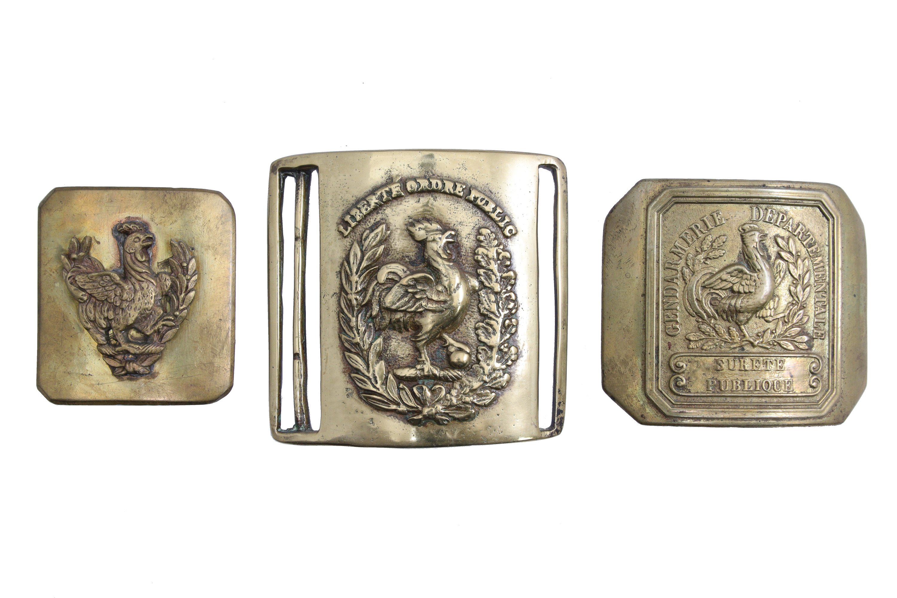 - Une grande, en laiton fondu, au coq et à la devise LIBERTE ORDRE PUBLIC.