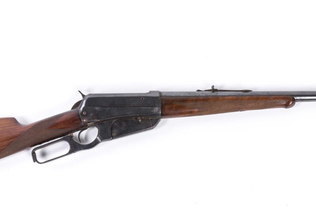 Calibre 405 W.C.F. Canon avec hausse de 61 cm, boitier de culasse avec reste de marquage, crosse en noyer en partie quadrillée, finition rebronzée