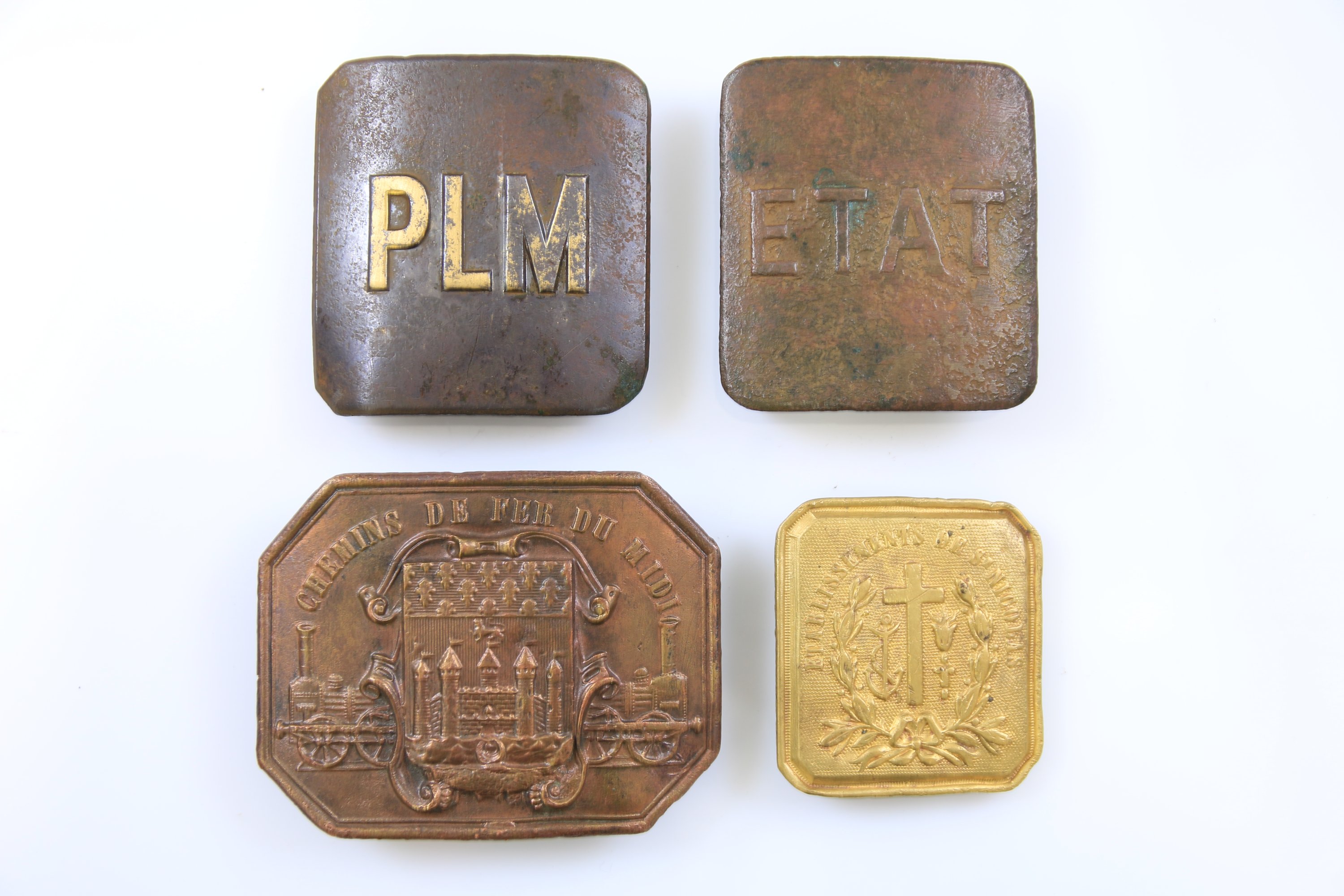 FRANCE IIIe République - Quatre plaques de ceinturons en laiton et laiton patiné: