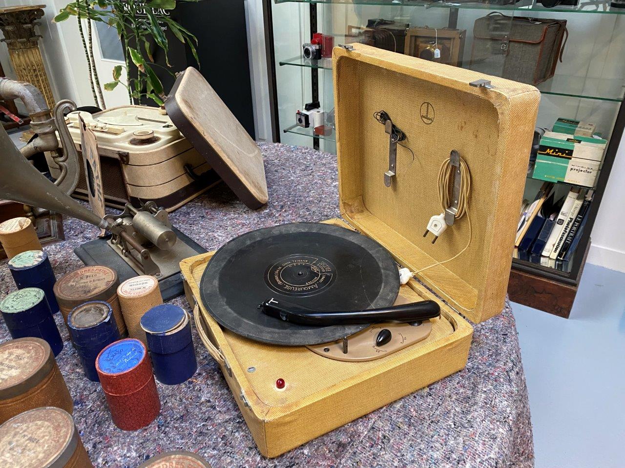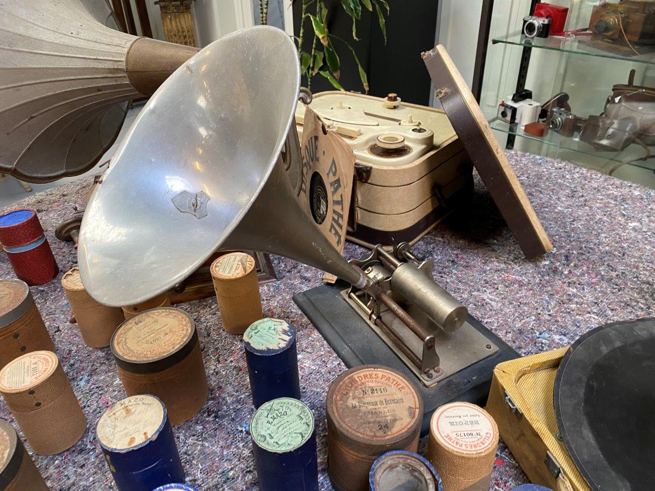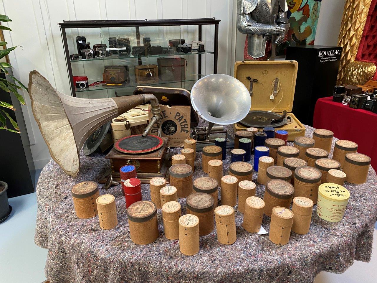 Collection de rouleaux de cire, gramophone Pathé, phonographe, etc.