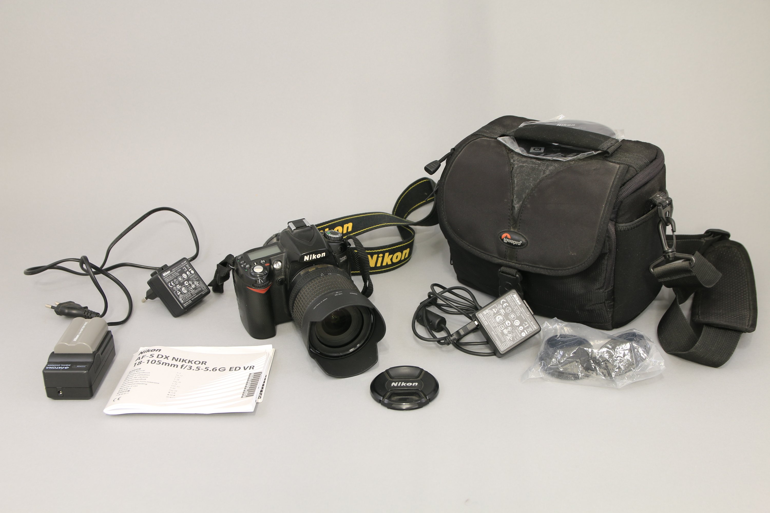 Appareil Nikon D90 équipé d'un objectif Nikon DX AF-S Nikkor 18-105 mm 1:3.5-5.6G.