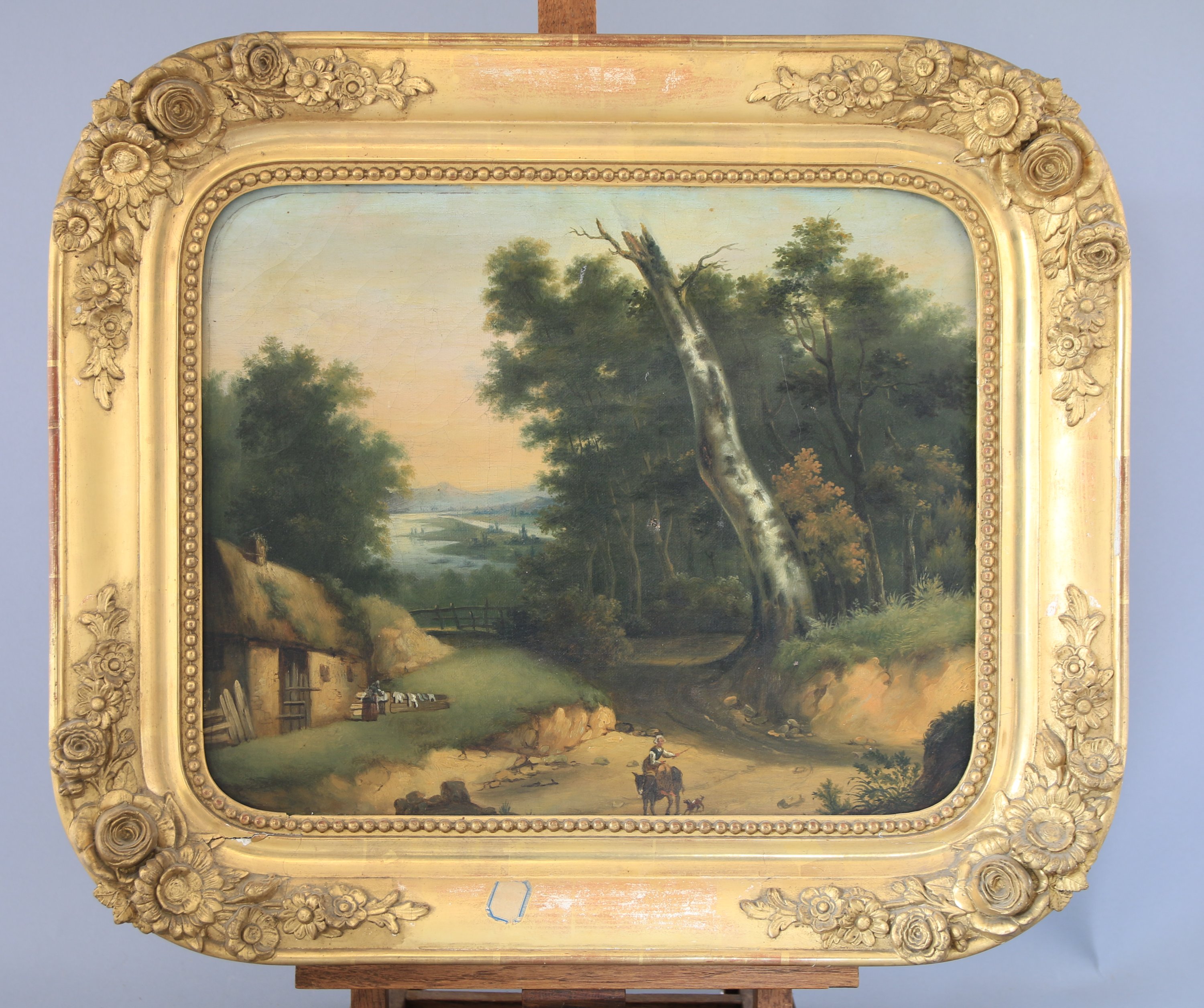 Dans des encadrement en bois doré de la seconde moitié du XIXe siècle. (Haut. 53 Larg. 61 cm, petits accidents).