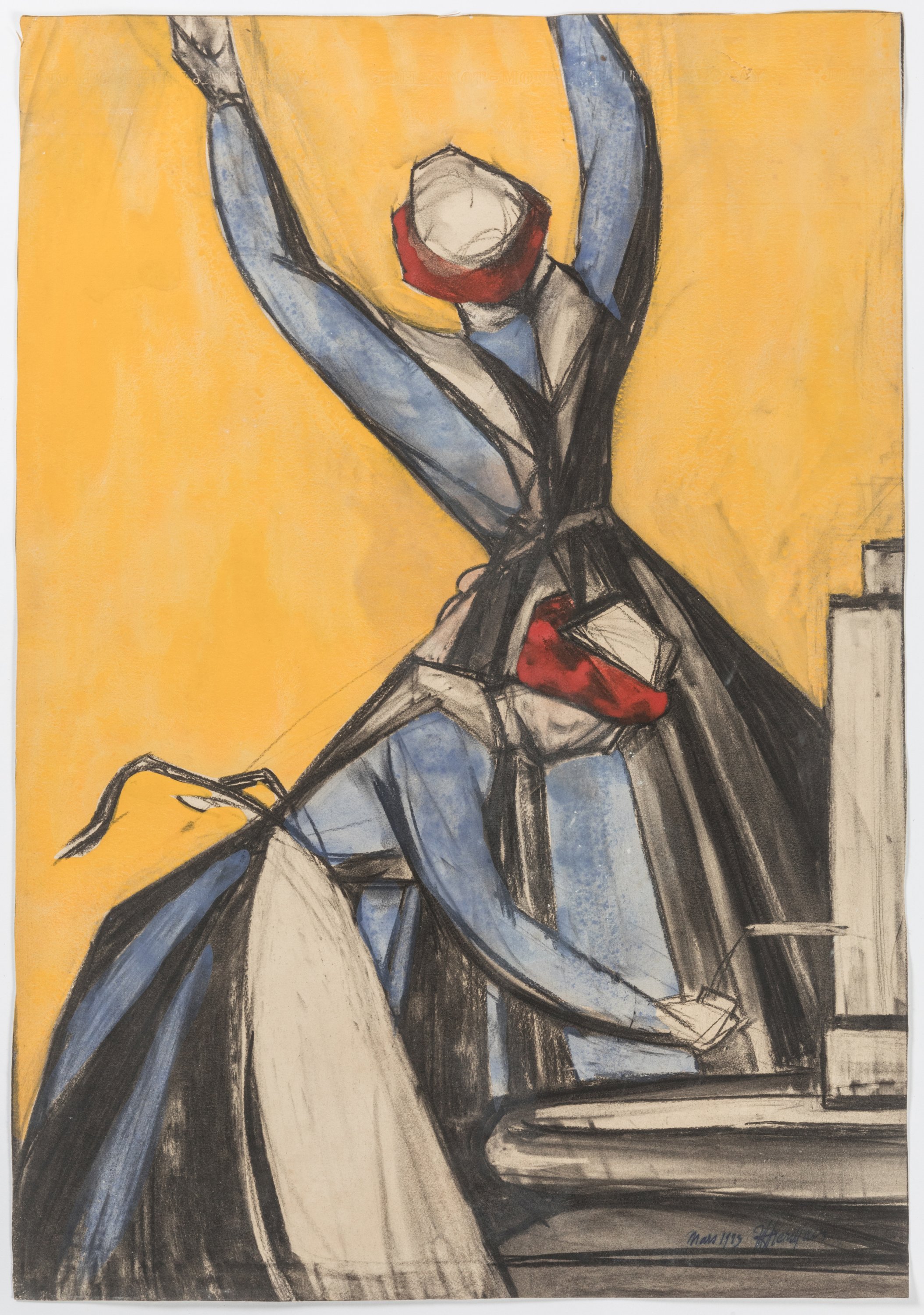 - Les lavandières, 1923. Technique mixte sur papier. Signée en bas à droite et datée "mars 1923". Haut. 71 Larg. 48,5 cm (petite déchirure en haut à gauche). Sans cadre ;