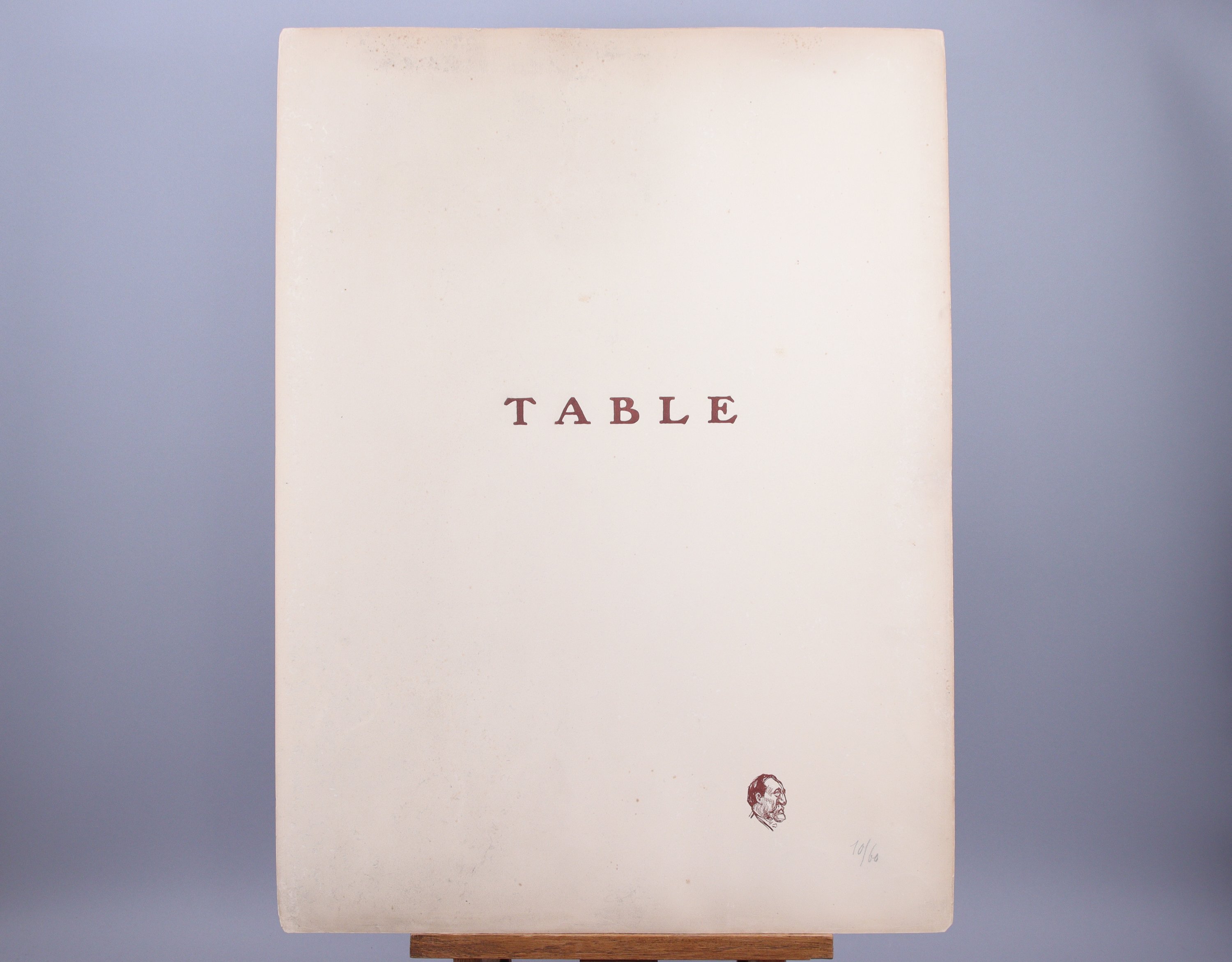 Lithographies en noir sur chine, avec remarque. Chacune porte le numéro de planche en haut à gauche, est signée en bas à droite, titrée, numérotée 10/ 60 et maintenue au verso par une bande de papier brun. Traces de plis ondulés, petites rousseurs éparses. Première page et page de titre numérotée 10/ 60, dernière page, très jaunies avec des mouillures, petits enlèvements en surface, quelques pliures et petites déchirures sur les bords, ainsi que sur les autres pages de supports des lithographies, irrégularités en surface sur les feuillets de support.