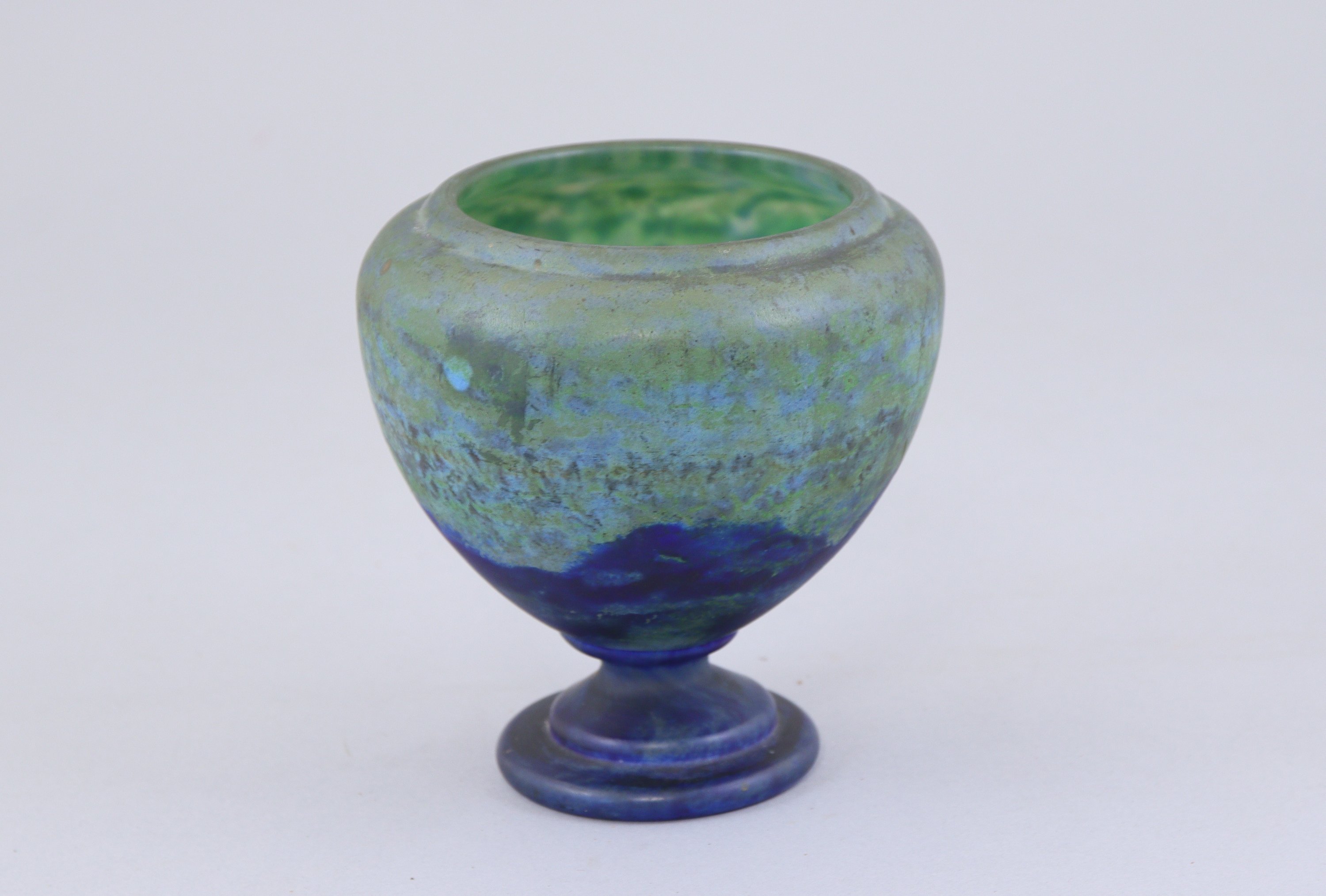 en verre multicouche vert et bleu reposant sur un piédouche.