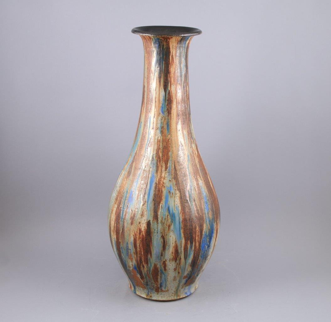 en grès, à décor de coulures polychromes.