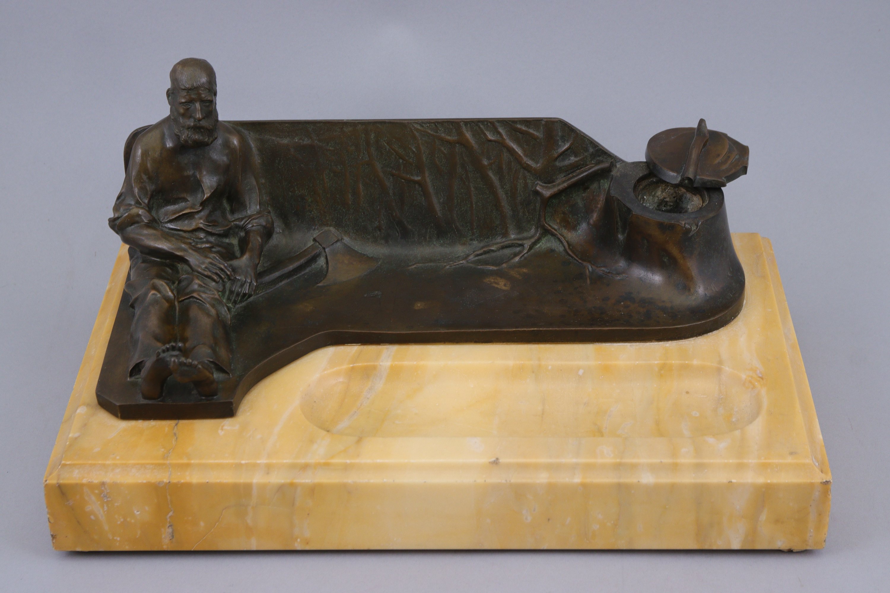 en bronze patiné, sur un socle en marbre jaune de Sienne.