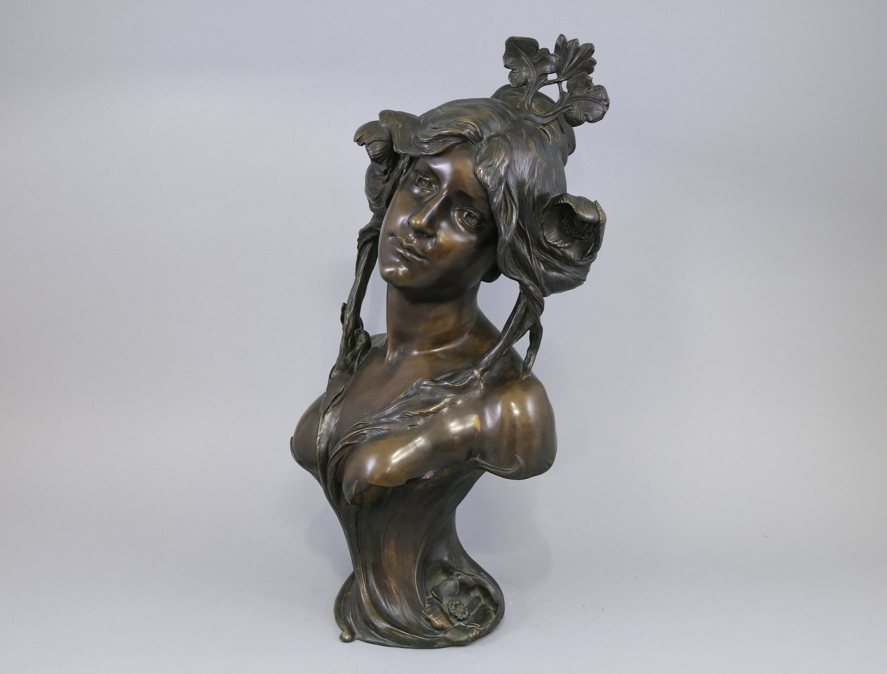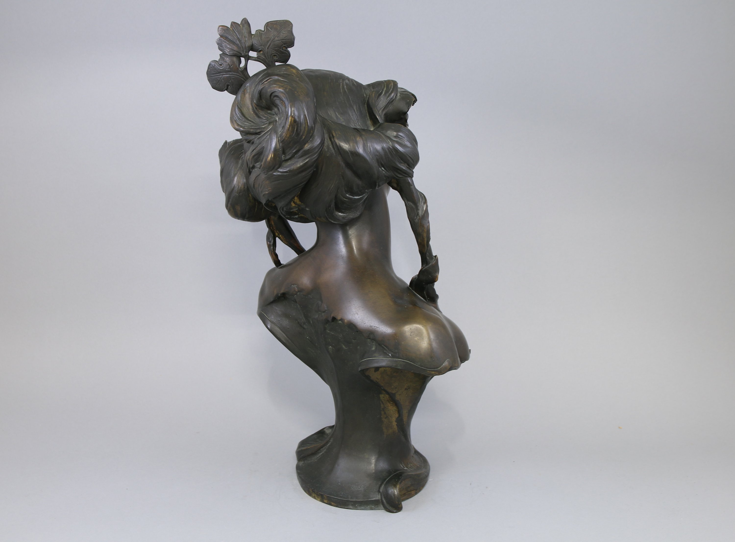 L'oeuvre d'Henri Plé est plurielle, offrant une diversité de sujets s'inscrivant dans le goût de la IIIe République en général et de l'Art nouveau en particulier. Ici, il offre un buste de femme à la coiffure parée de fleurs et feuilles se prolongeant sur un pied mouvementé. Cette oeuvre n'est pas sans rappeler "La Nature" de son confrère Alfons Mucha, créée entre 1899 et 1900.