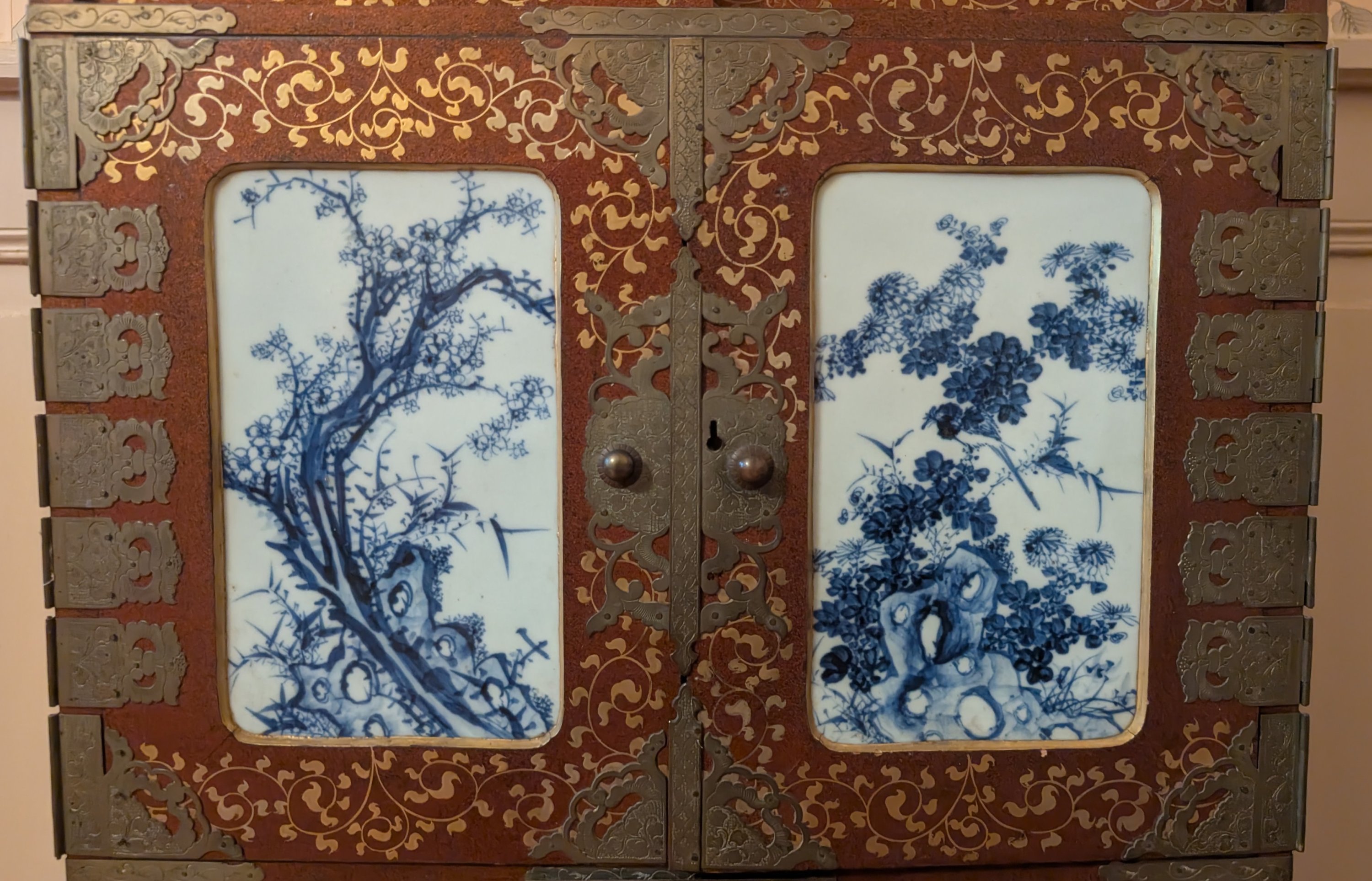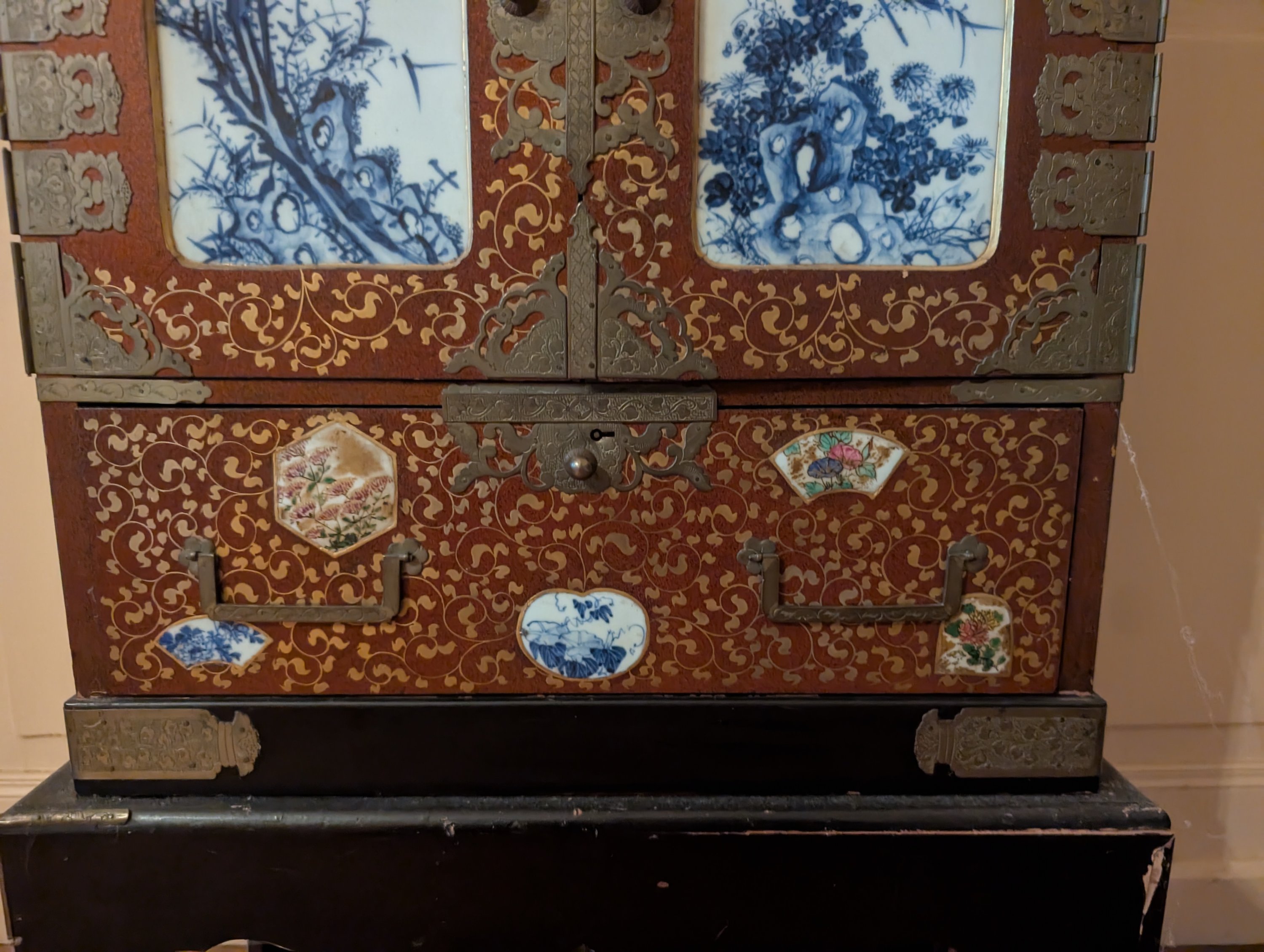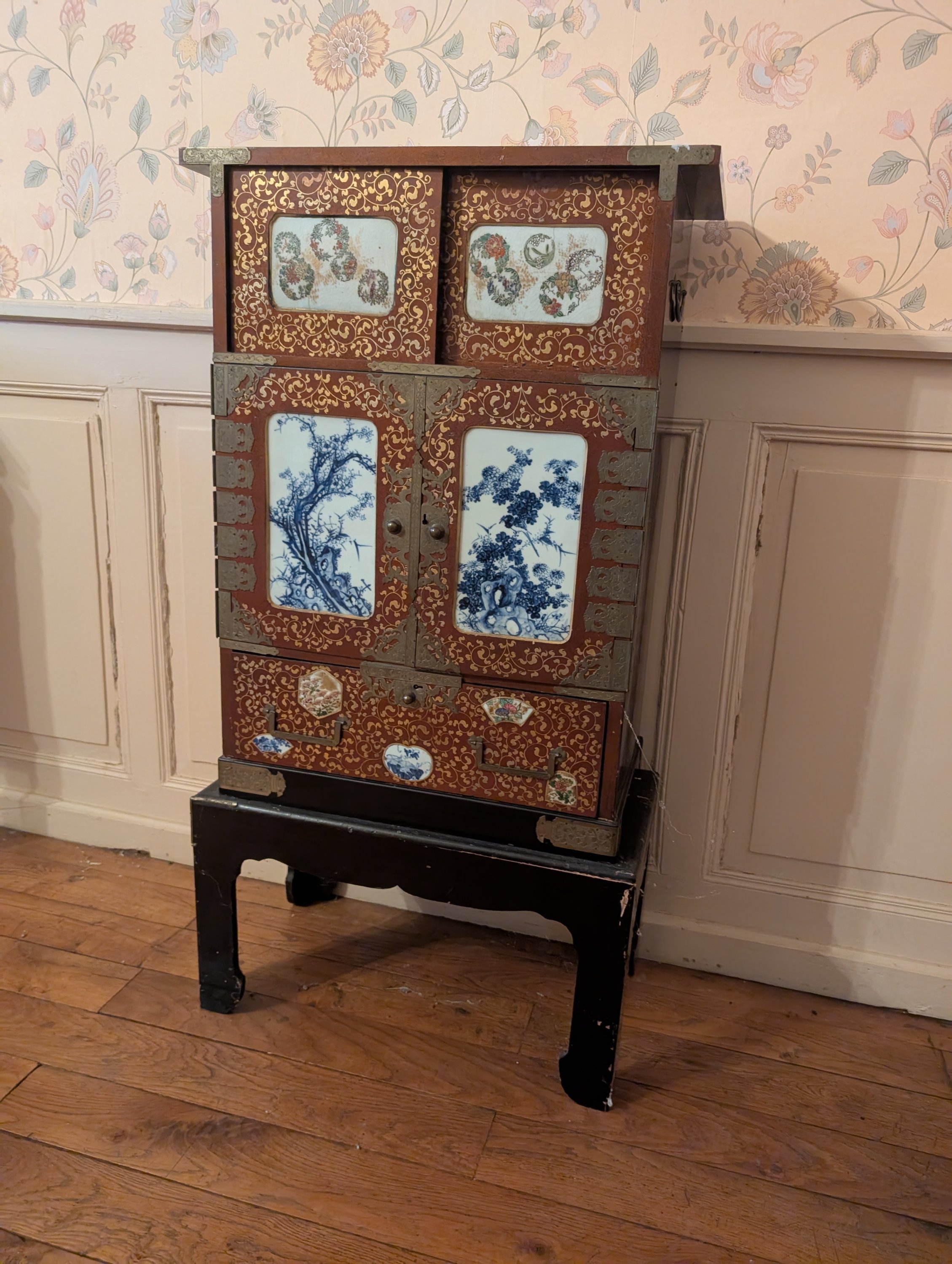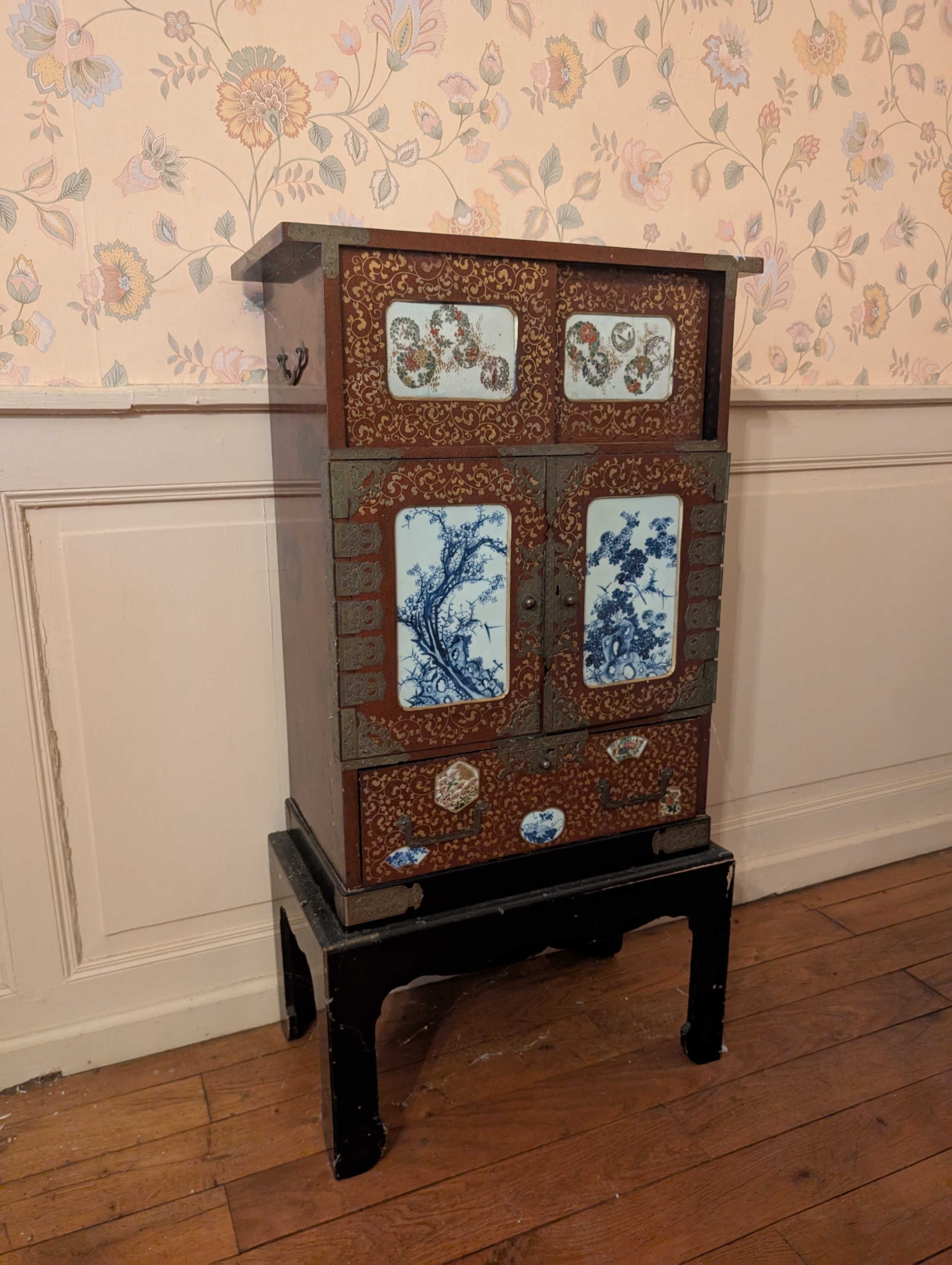 Il ouvre à deux vantaux découvrant six tiroirs et un grand tiroir en partie basse.