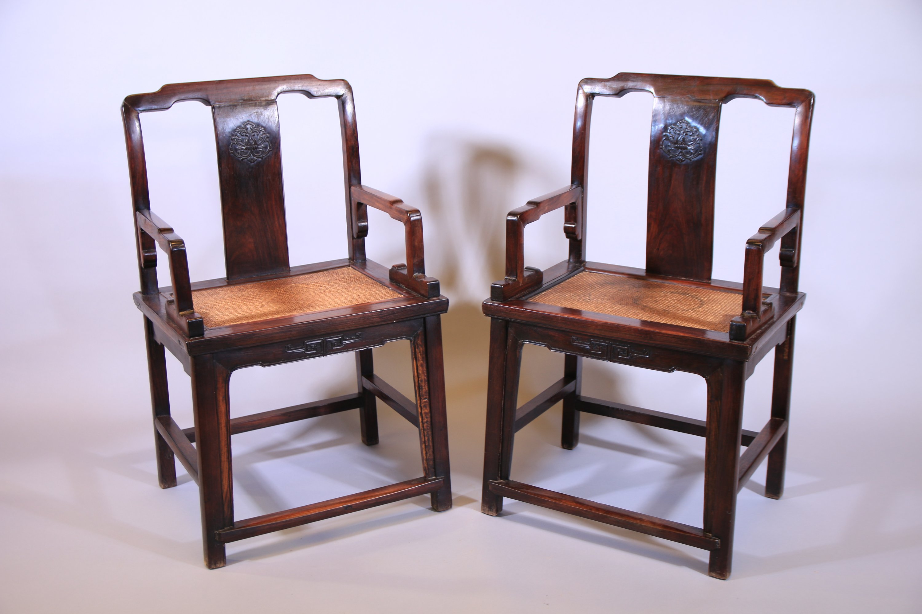 en bois et fer, à assise cannée et décor d'un masque de taotié.