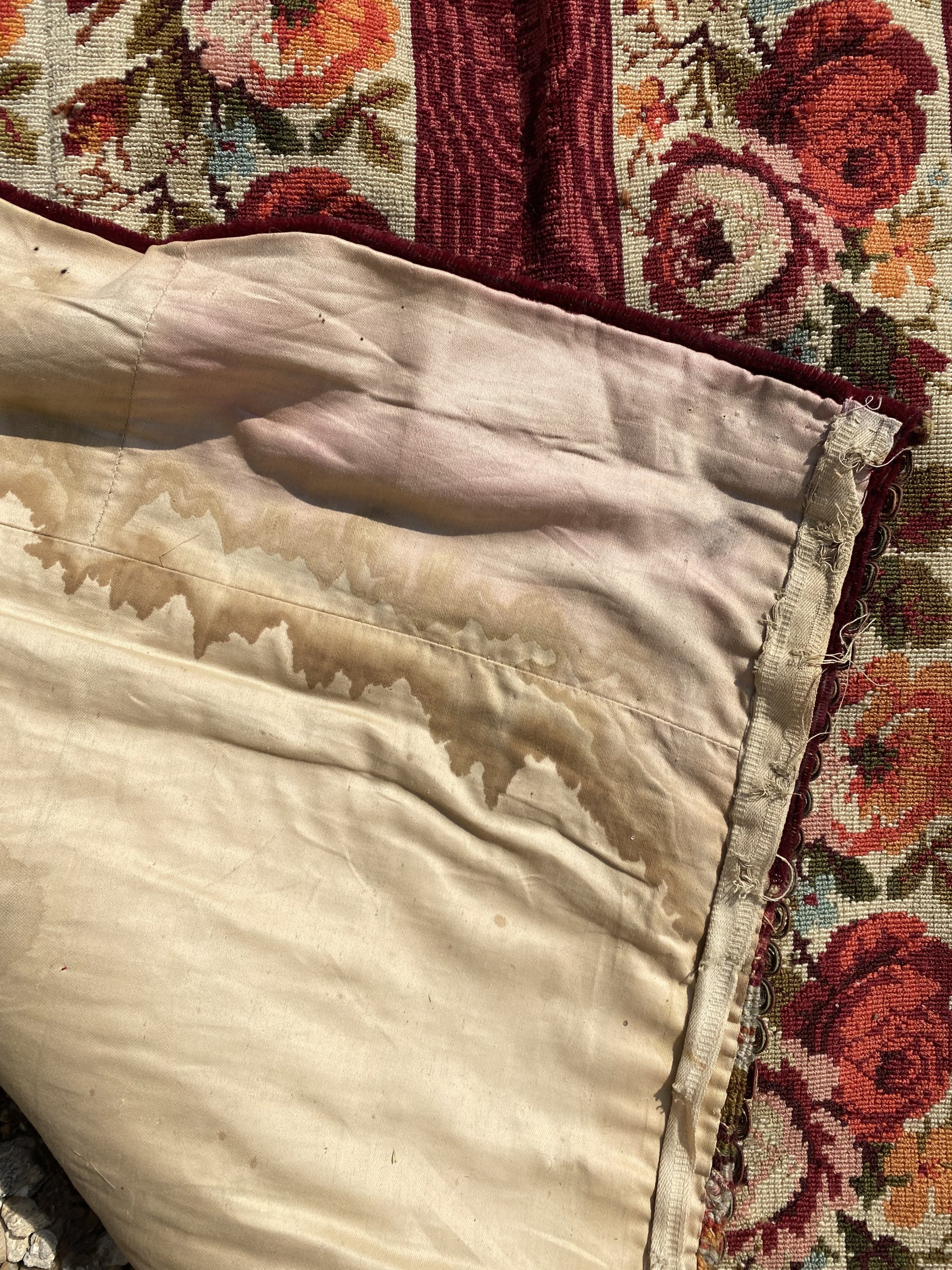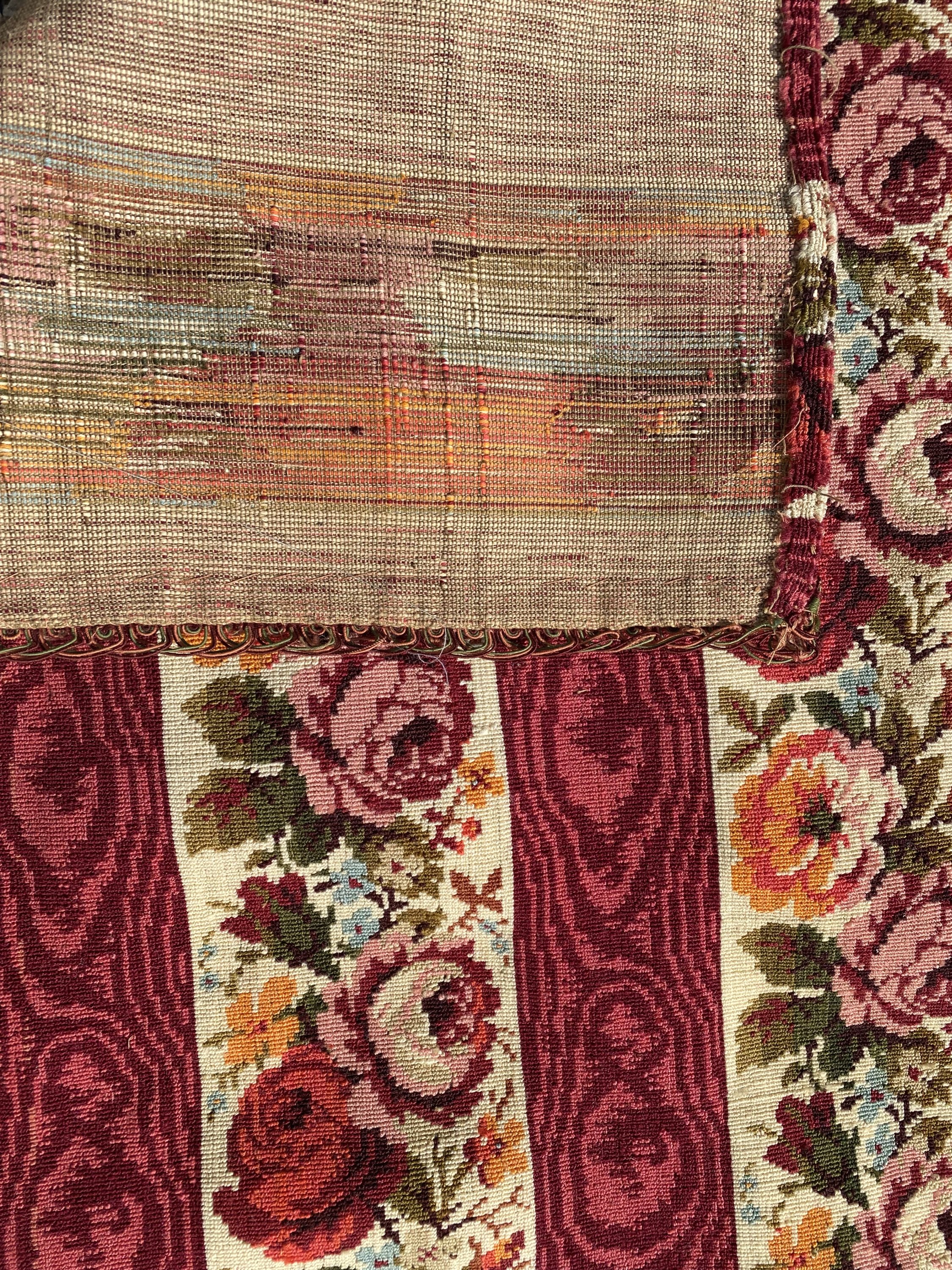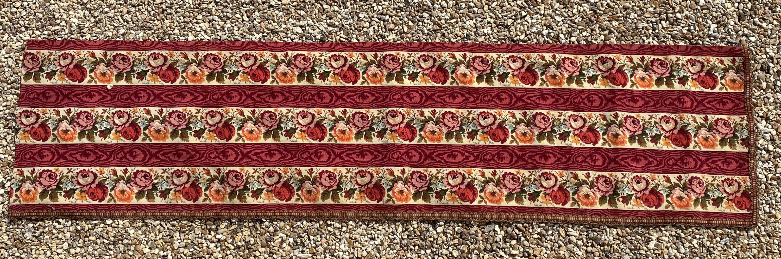 au point mécanique de bandes en guirlandes de roses alternant avec des bandes cramoisies.