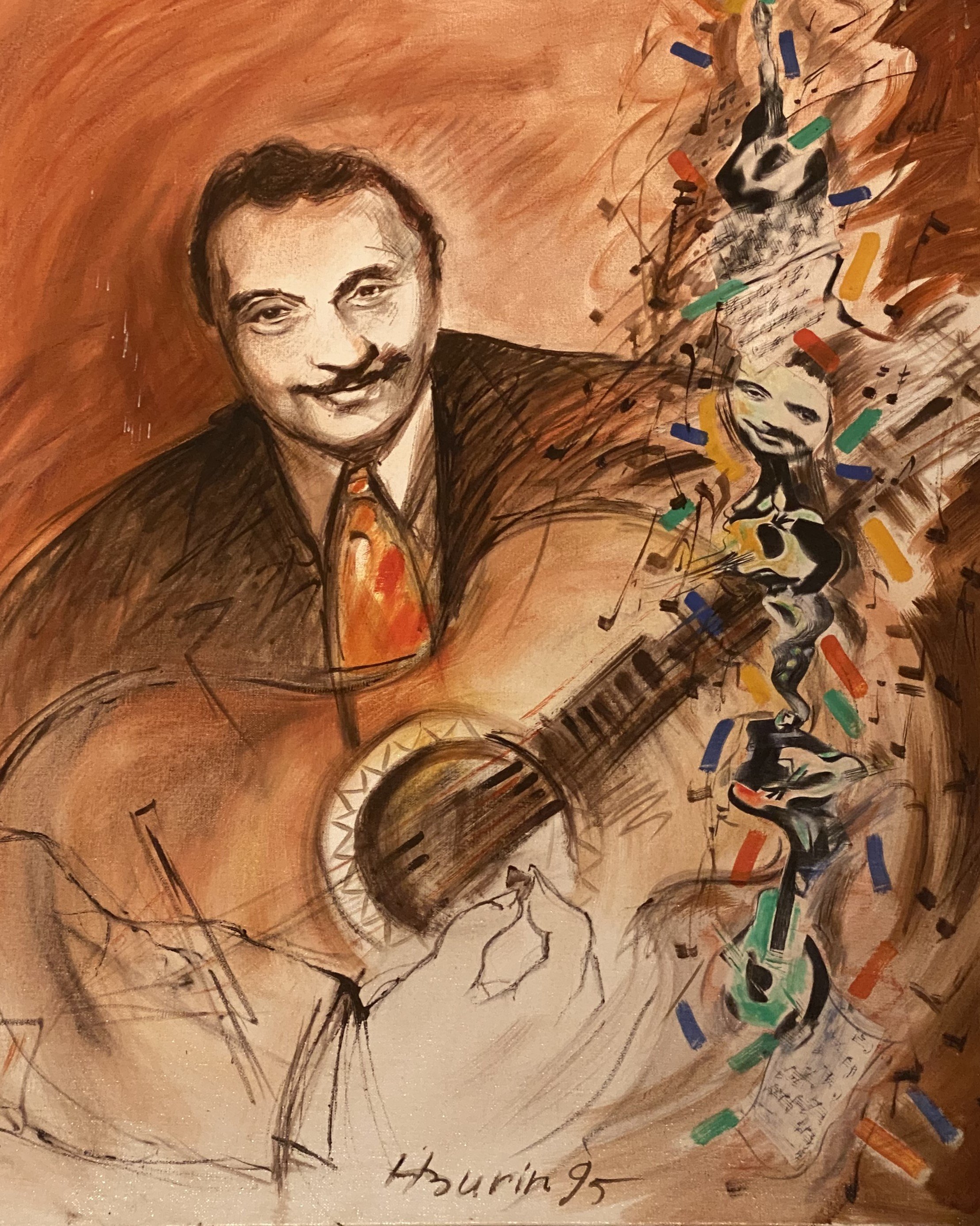 - Henri Burin (Français, 1936-2013), Musicien et instrument, Dessin signé et daté ;