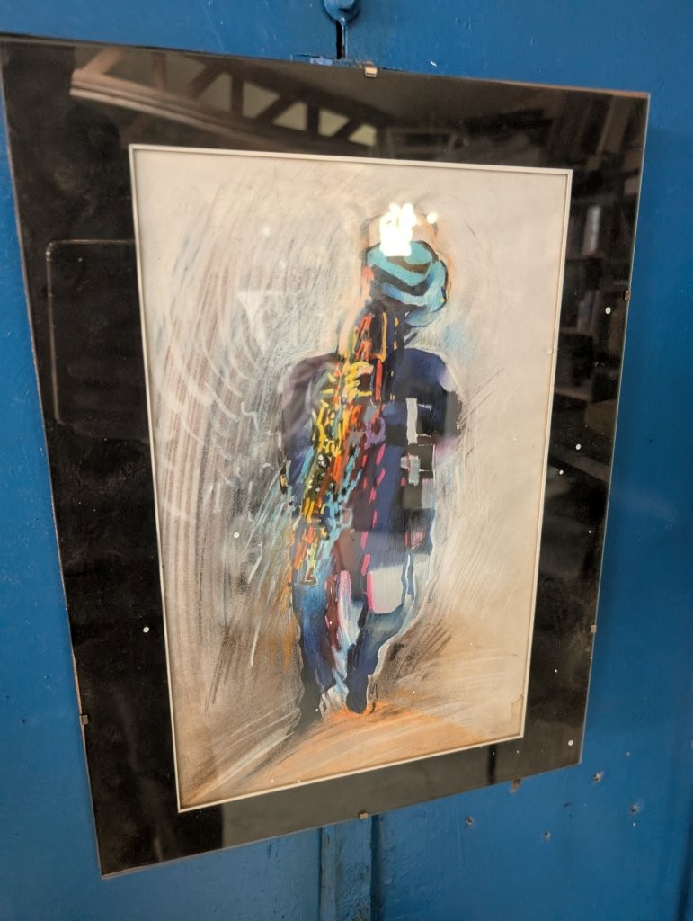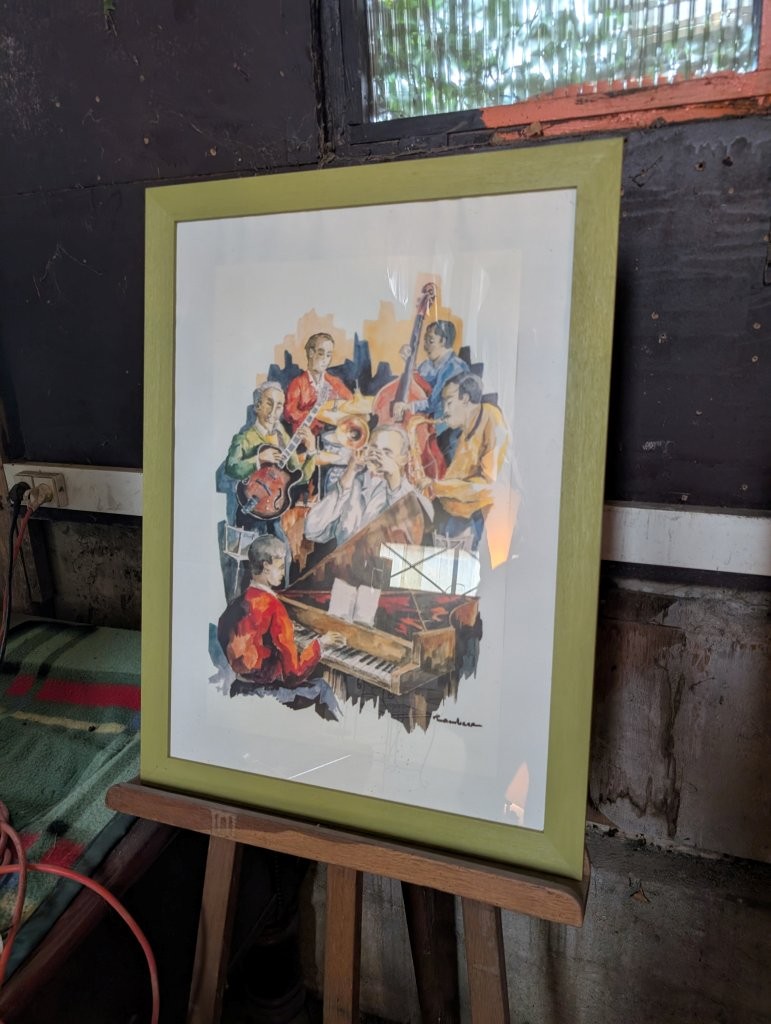 Joint: deux petits dessins par Burin représentant des musiciens daté 91.