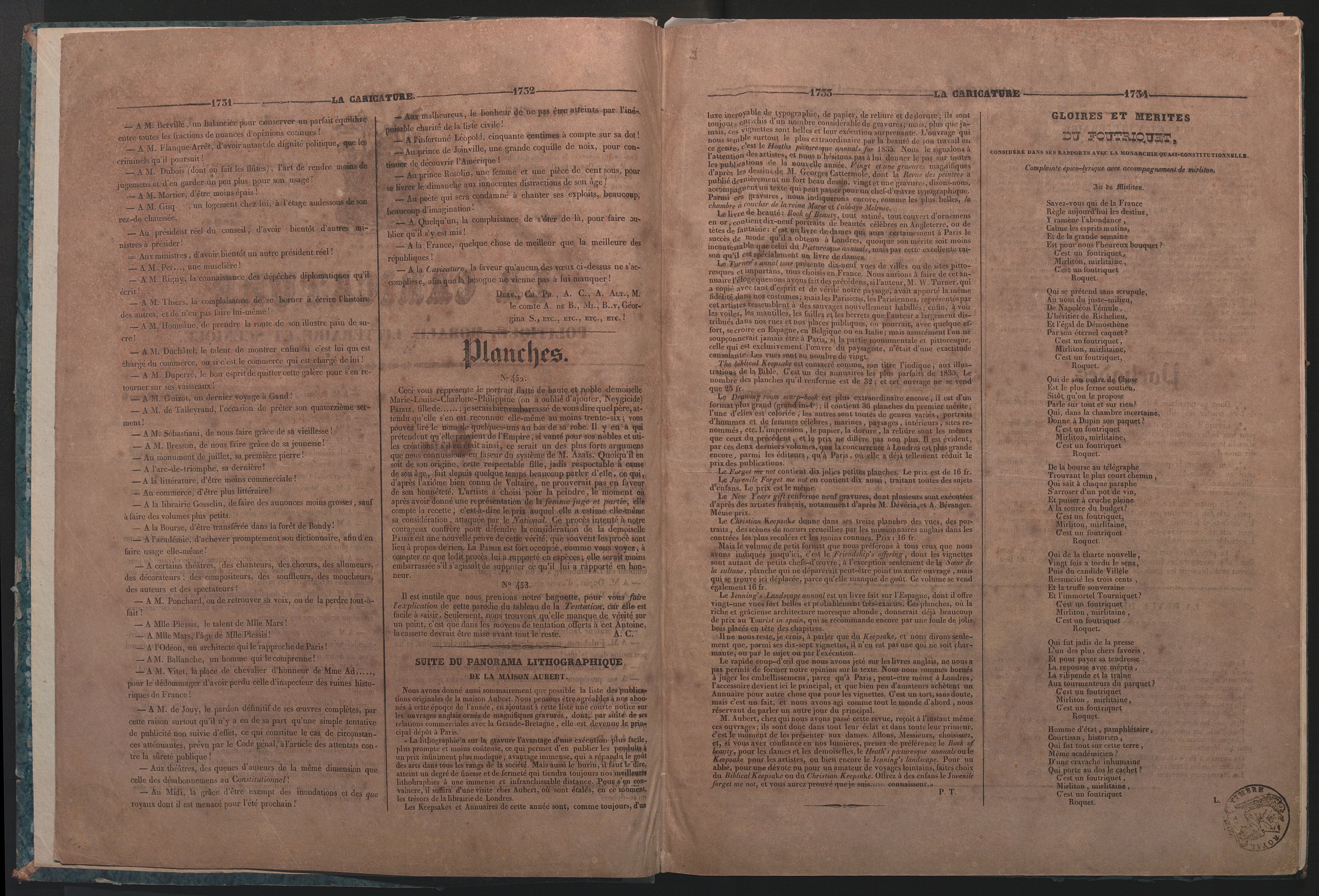 LA CARICATURE POLITIQUE, MORALE, RELIGIEUSE, LITTERAIRE ET SCENIQUE, HEBDOMADAIRE SATIRIQUE ILLUSTRE, 1835