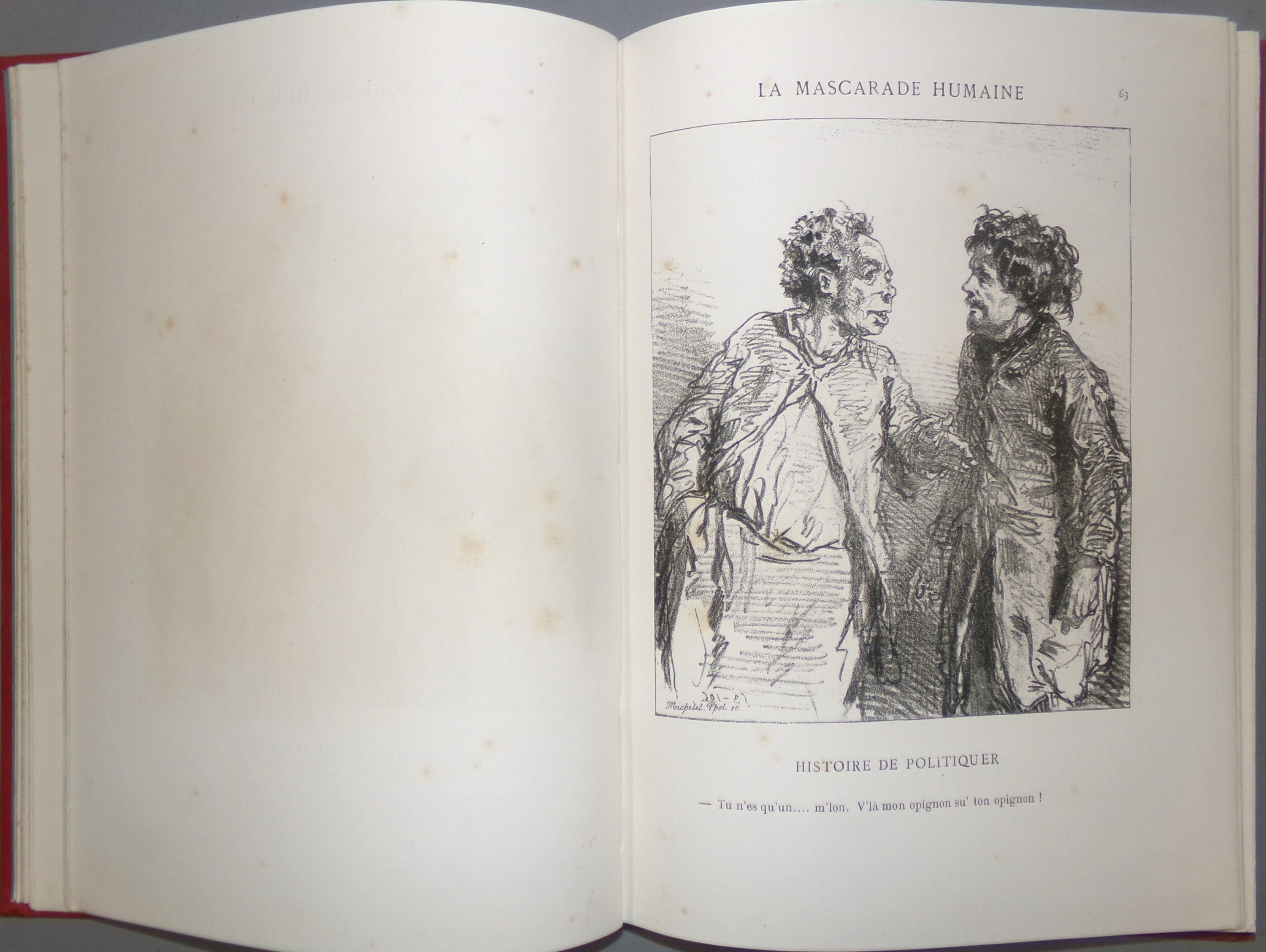 Paul Gavarni et Ludovic Halévy, La mascarade humaine. Calmann-Lévy, Paris 1881. In-4, rel. de l'éditeur en plein cartonnage rouge ;