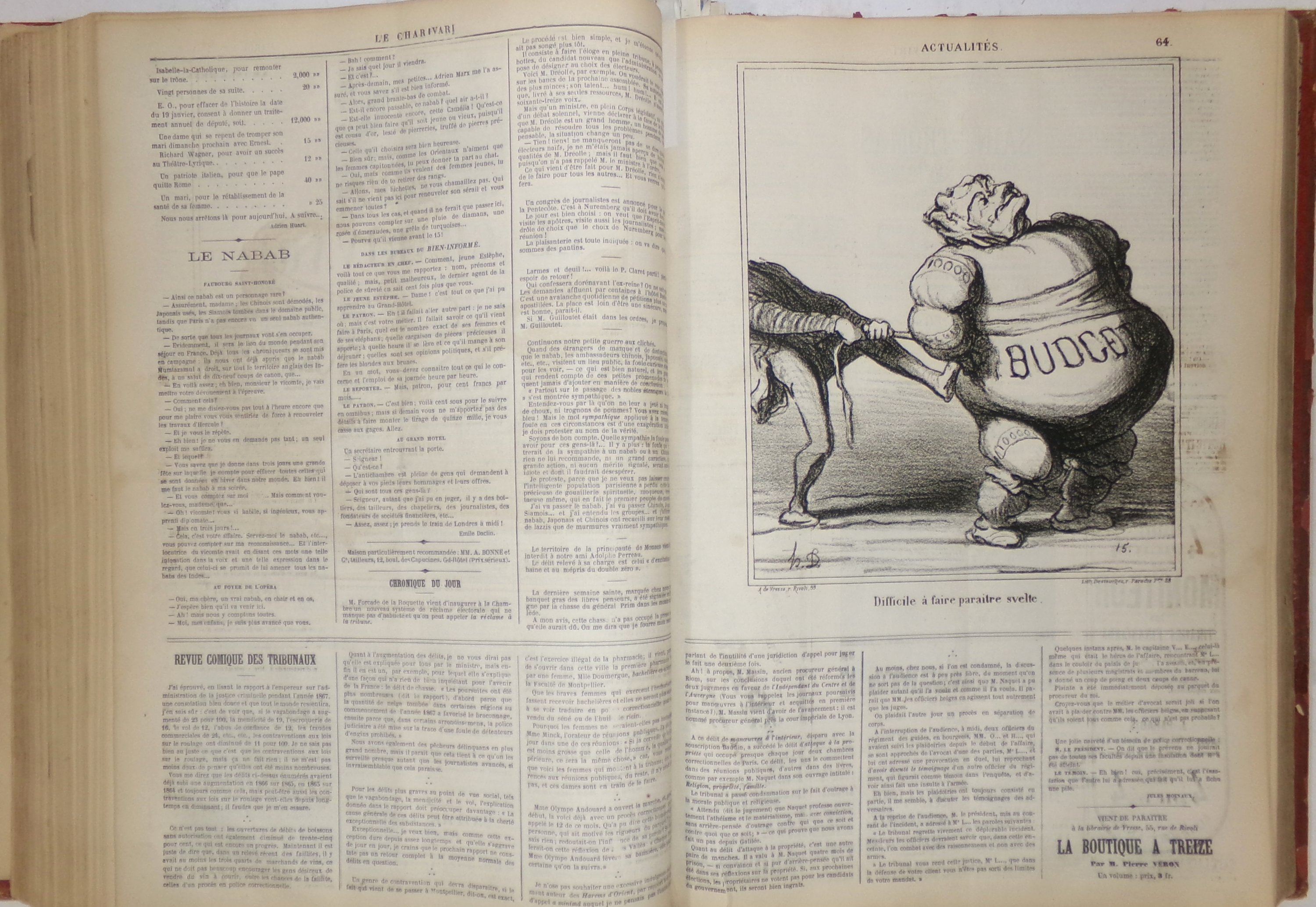 (1 vol.) du 1er janv. 1869 au 30 juin 1869, complet, nombreuses illustrations de Cham et d’Honoré Daumier. T.B.E.