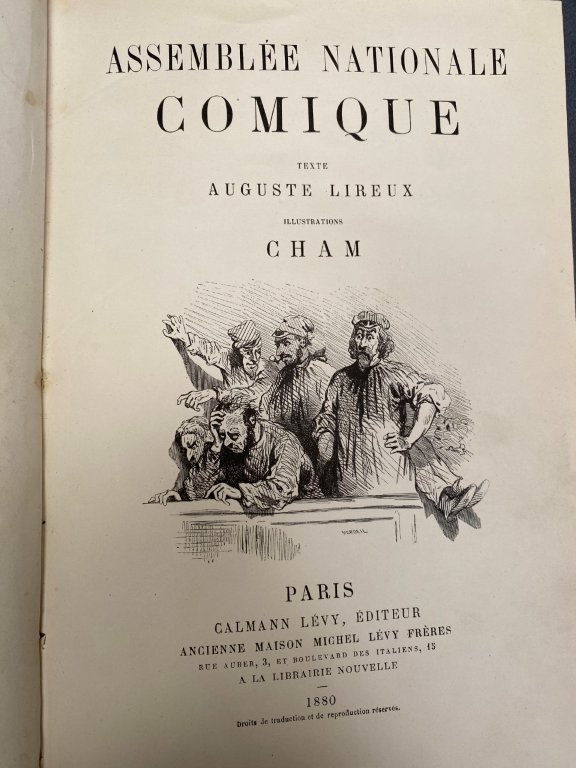 Auguste Lireux et Amédée de Noé dit Cham, Assemblée nationale comique. Paris, Calmann Lévy, 1880. In-4 rel. ½ basane, 625 pp. Réédition de 1850.