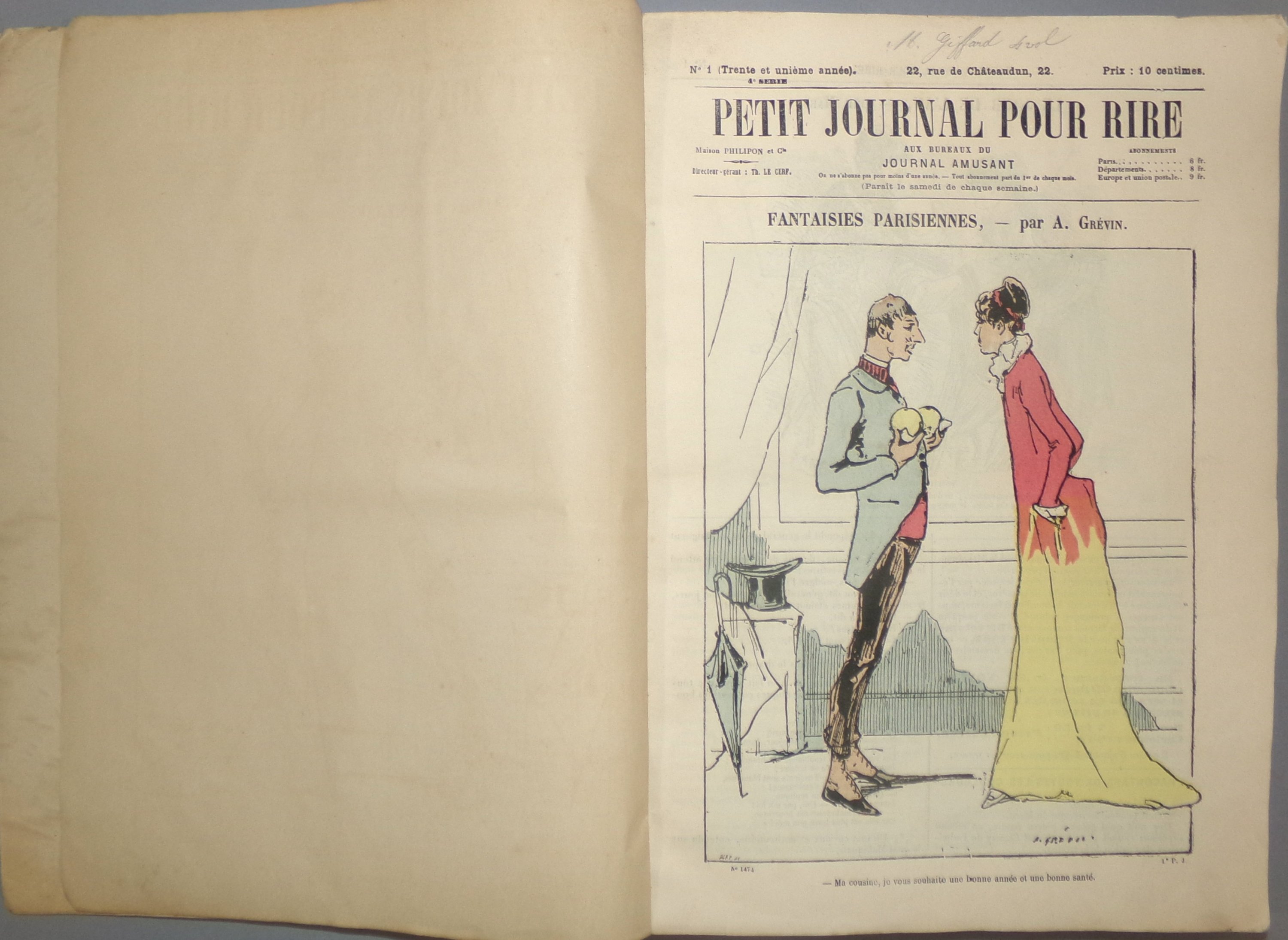 Joint: Petit Journal pour Rire, 1 vol. in-4 broch. n°1 (1887, 4e série, n°1474) au n°53 (n°1526).
