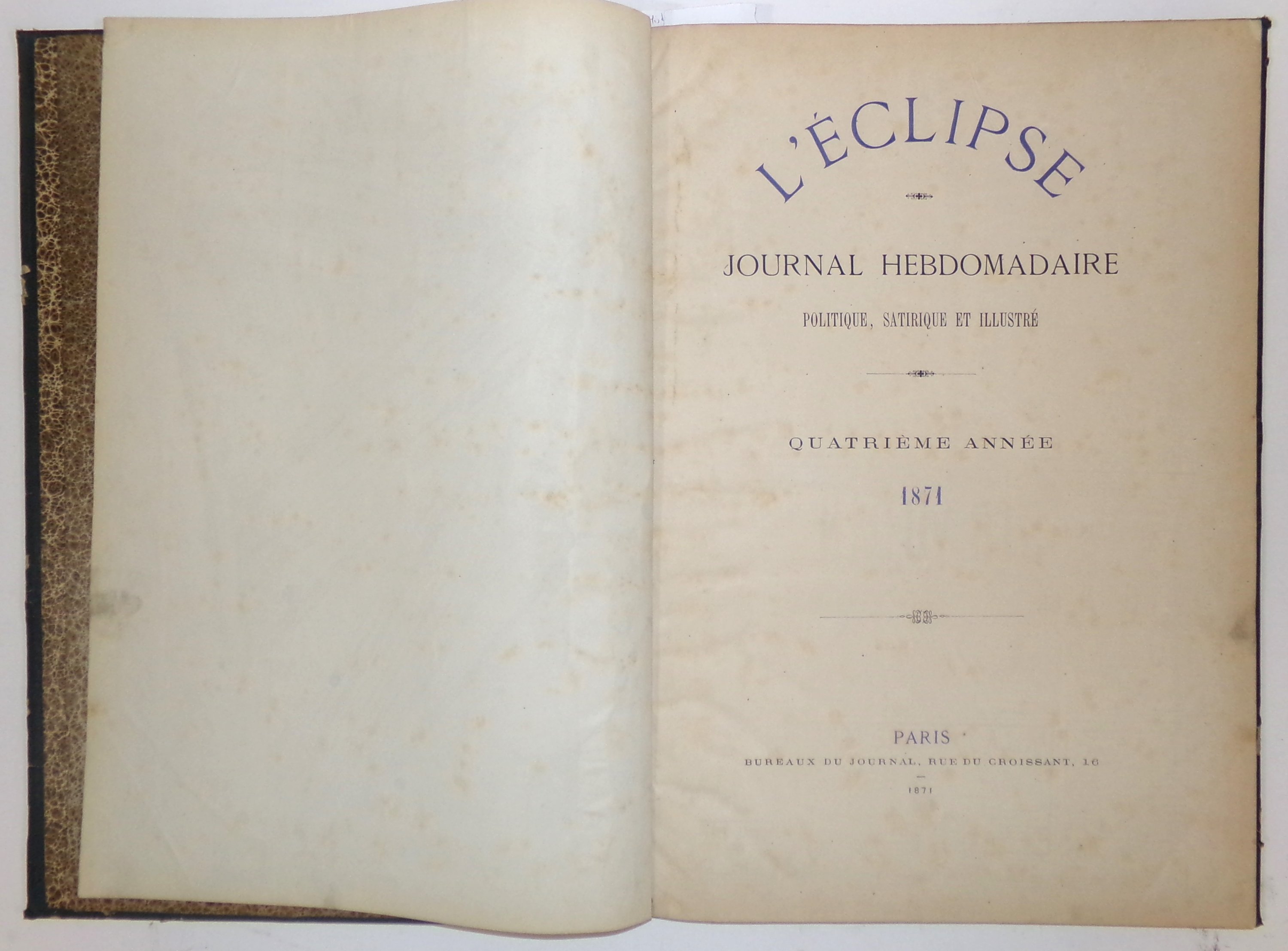 (1 vol.): n°140 (juin 1871) au n°166 (31 décembre 1871) y compris les numéros bis: 149b, 151b, 156b, 158b, 160b et 164b ;