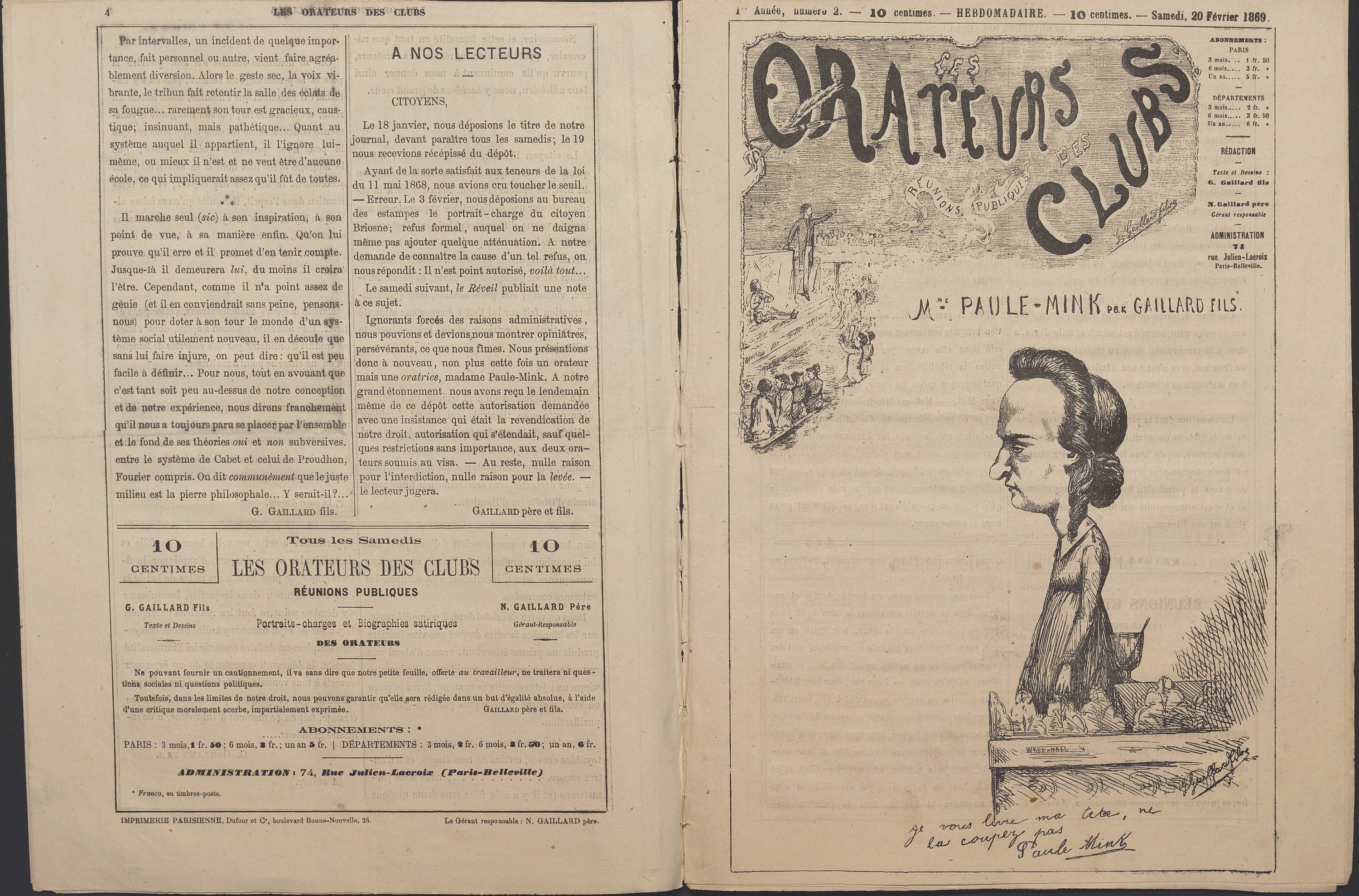 Rarissime hebdomadaire éphémère fondé par Napoléon Gaillard (1815-1900), néo-babouviste, propagandiste de la libre-pensée et de l’athéisme auquel collabore son fils Gustave, ayant pour objectif de faire connaître les orateurs révolutionnaires les plus populaires qui animaient les « clubs rouges. »
