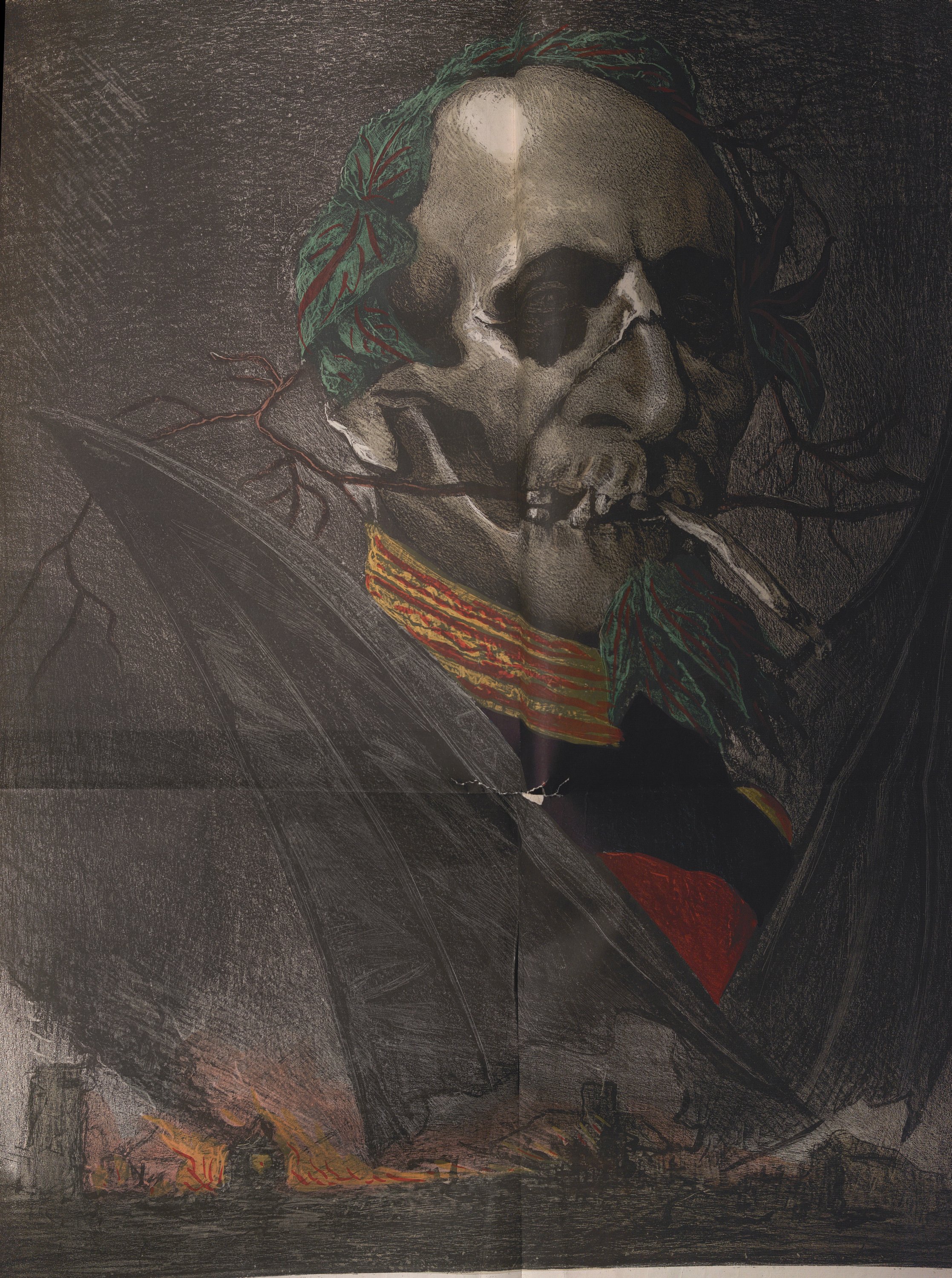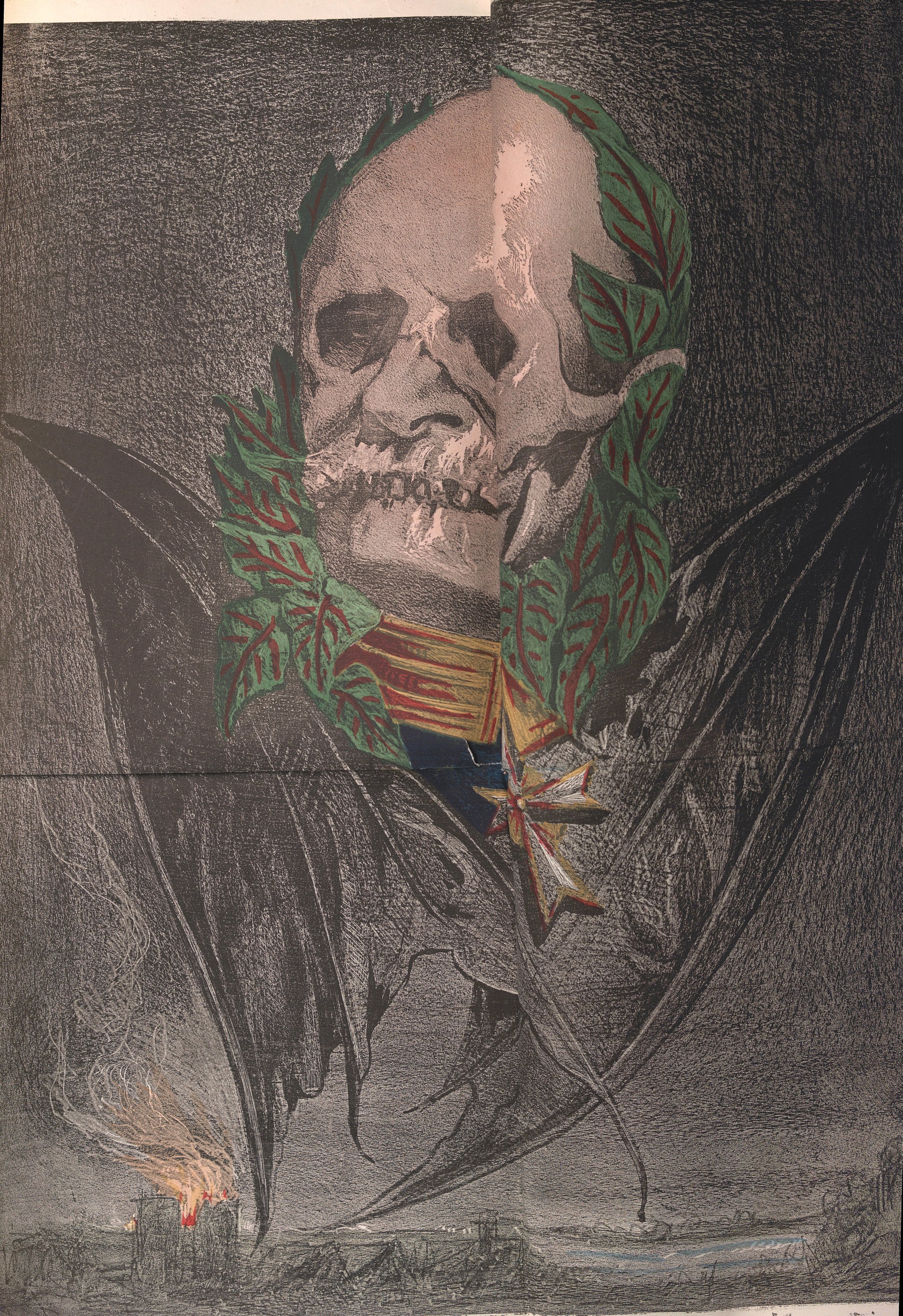 Edmond Guillaume: série Les génies de la mort, 3 planches pliantes ; Triomphe de la Restauration ;