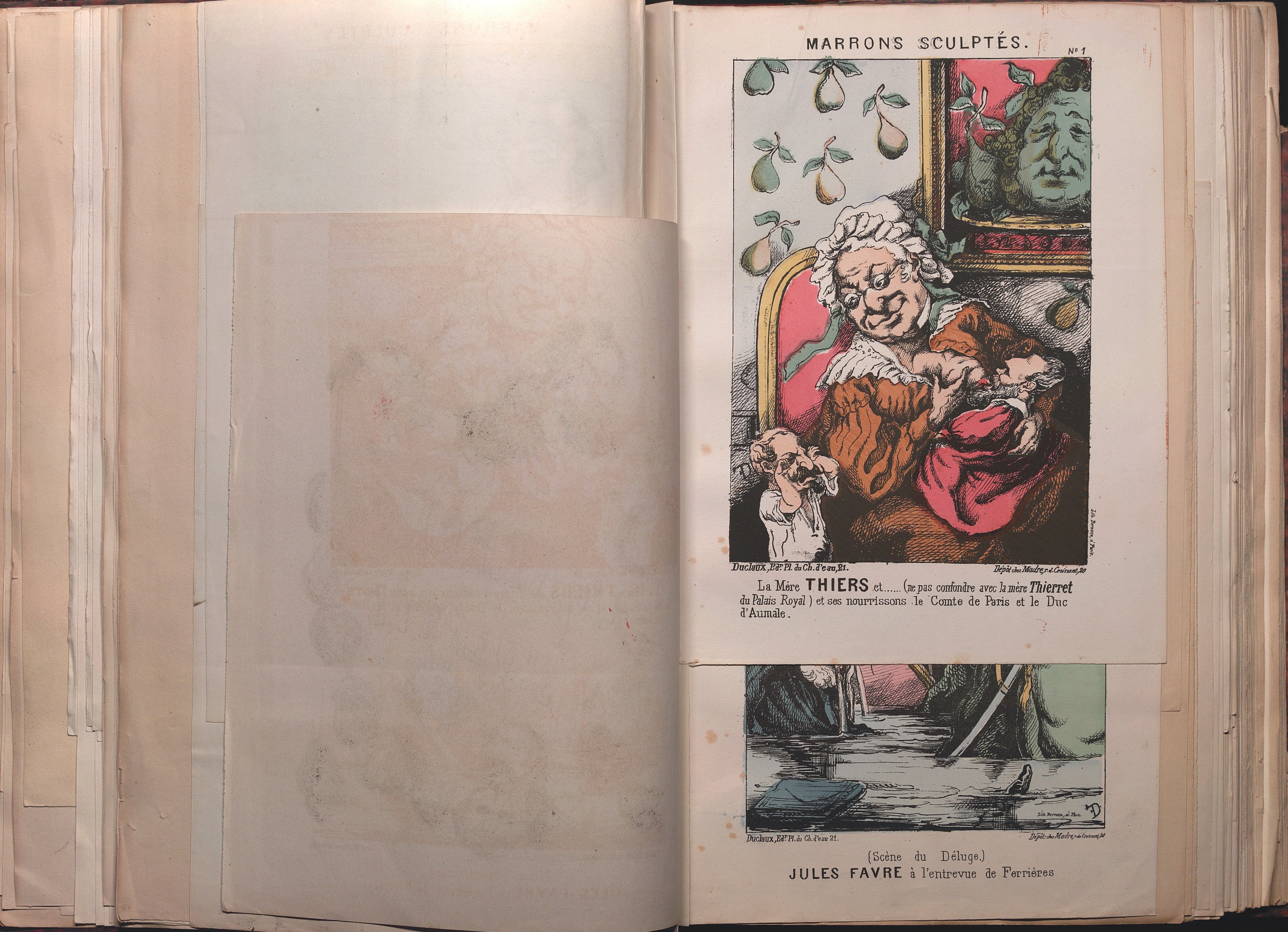 Georges Raoul Pilotelle (1845-1918) dit Pilotell: série Les représentants en représentation, n°1 à 3 (sur 5 pl.) ; série Communardiana, page de titre et n°1 au n°15 (mque 11-13) ;